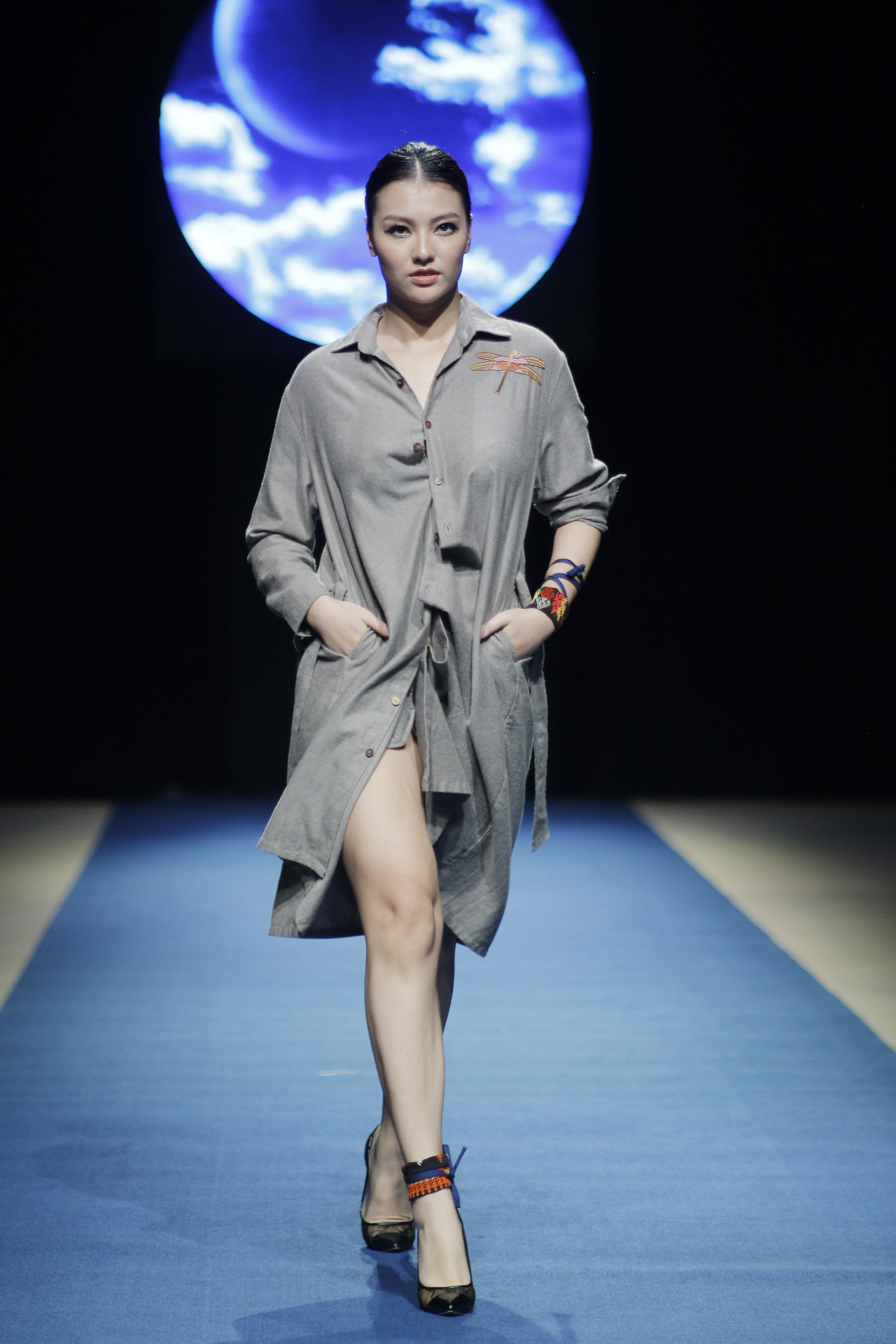 Với chất liệu đũi Nam Cao kết hợp với jeans, NTK Hảo Nguyễn tạo nên sự kết hợp mang tính đối lập mà vẫn hài hòa. Những đường cắt kỹ thuật chuẩn xác và kiểu dáng sinh động, Hảo Nguyễn chứng minh được tính năng vượt trội của chất liệu đũi, sự thích nghi của chất liệu có nguồn gốc tự nhiên đã gợi mở nhiều ý tưởng cho các NTK.