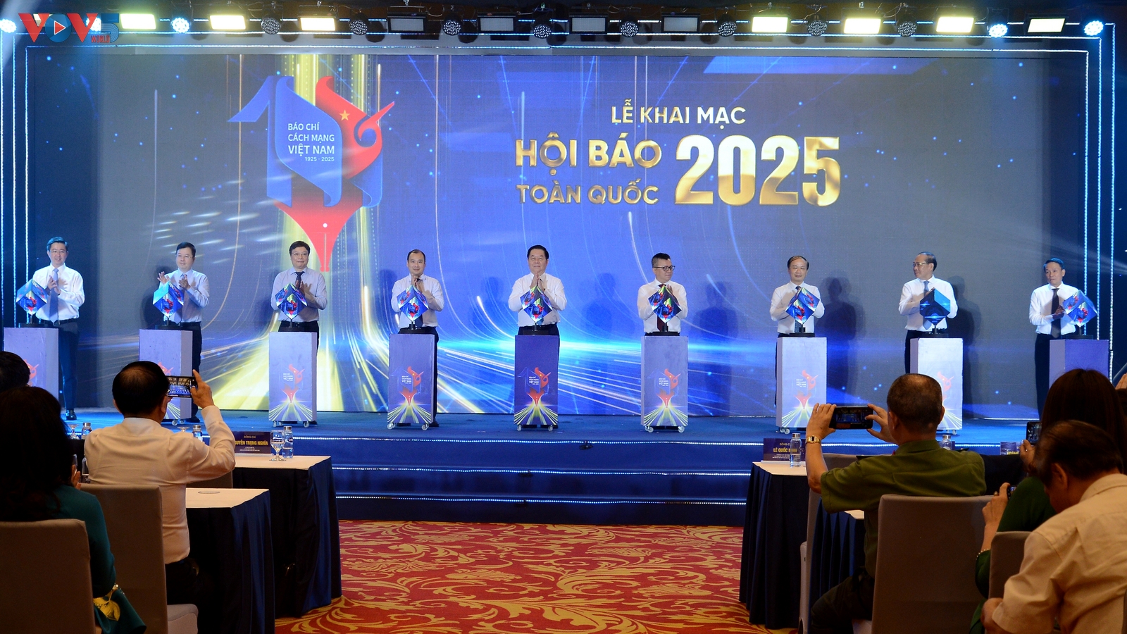 | Các đại biểu thực hiện nghi lễ khai mạc Hội báo toàn quốc 2025 |