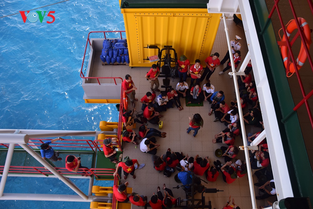 Đây là dip đại biểu trẻ có những trải nghiệm sâu sắc về cuộc sống, nhiệm vụ của chiến sĩ, đồng bào đang ngày đêm bám biển thực hiện nhiệm vụ phát triển kinh tế biển và bảo vệ chủ quyền thiêng liêng của Tổ quốc.