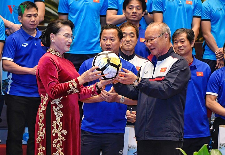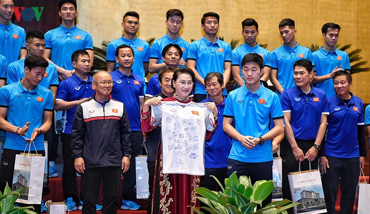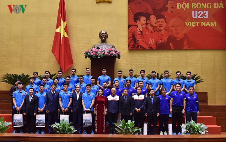 (VOV5) - “Các em làm nên điều kỳ diệu, làm rung động trái tim người dân Việt Nam từ miền xuôi tới miền ngược, từ thành thị tới nông thôn”, khẳng định của Chủ tịch Quốc hội Nguyễn Thị Kim Ngân tại buổi đón tiếp đội tuyển U23 Việt Nam ngày 29/01/2018.