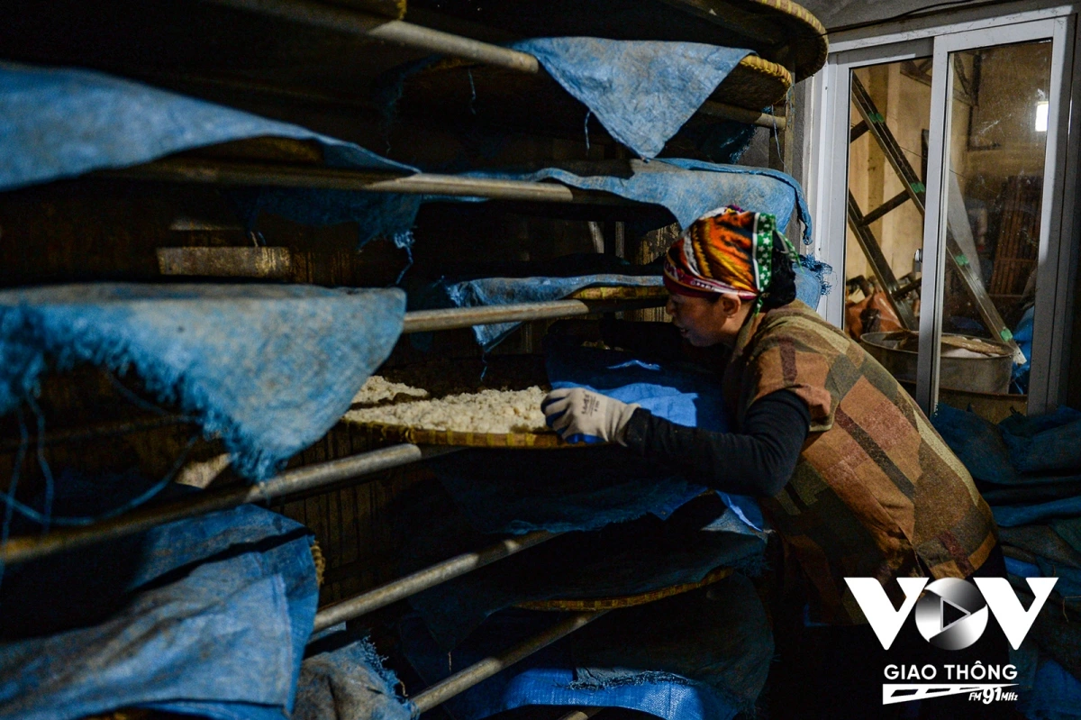 | Gạo sau khi được nấu thành xôi dẻo đến công đoạn ủ mốc. |
