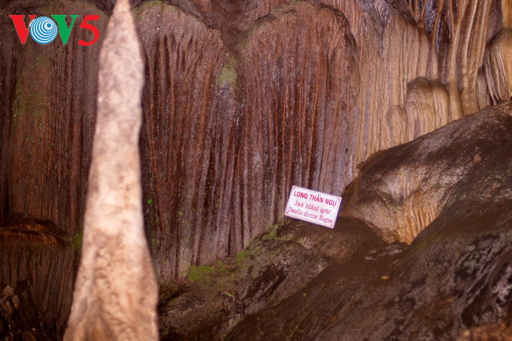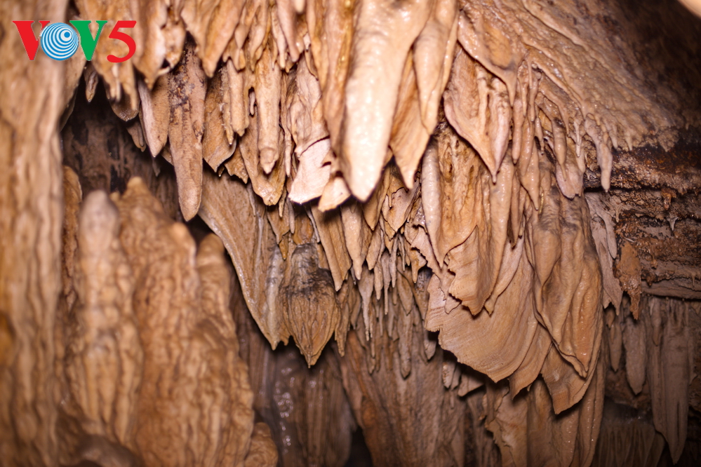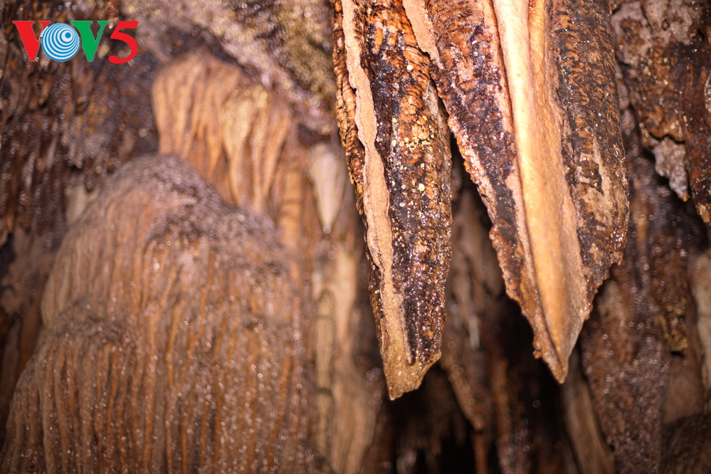 | Không giống với những hệ thống hang động các nơi khác, khối lượng thạch nhũ ở hang Lùng Khúy tập trung với mật độ dày đặc. |