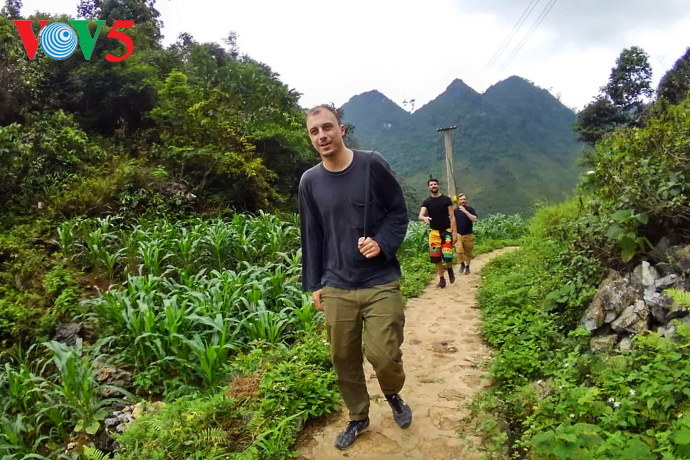 | Khung cảnh hữu tình nhìn từ đường mòn lên hang Lùng Khúy |