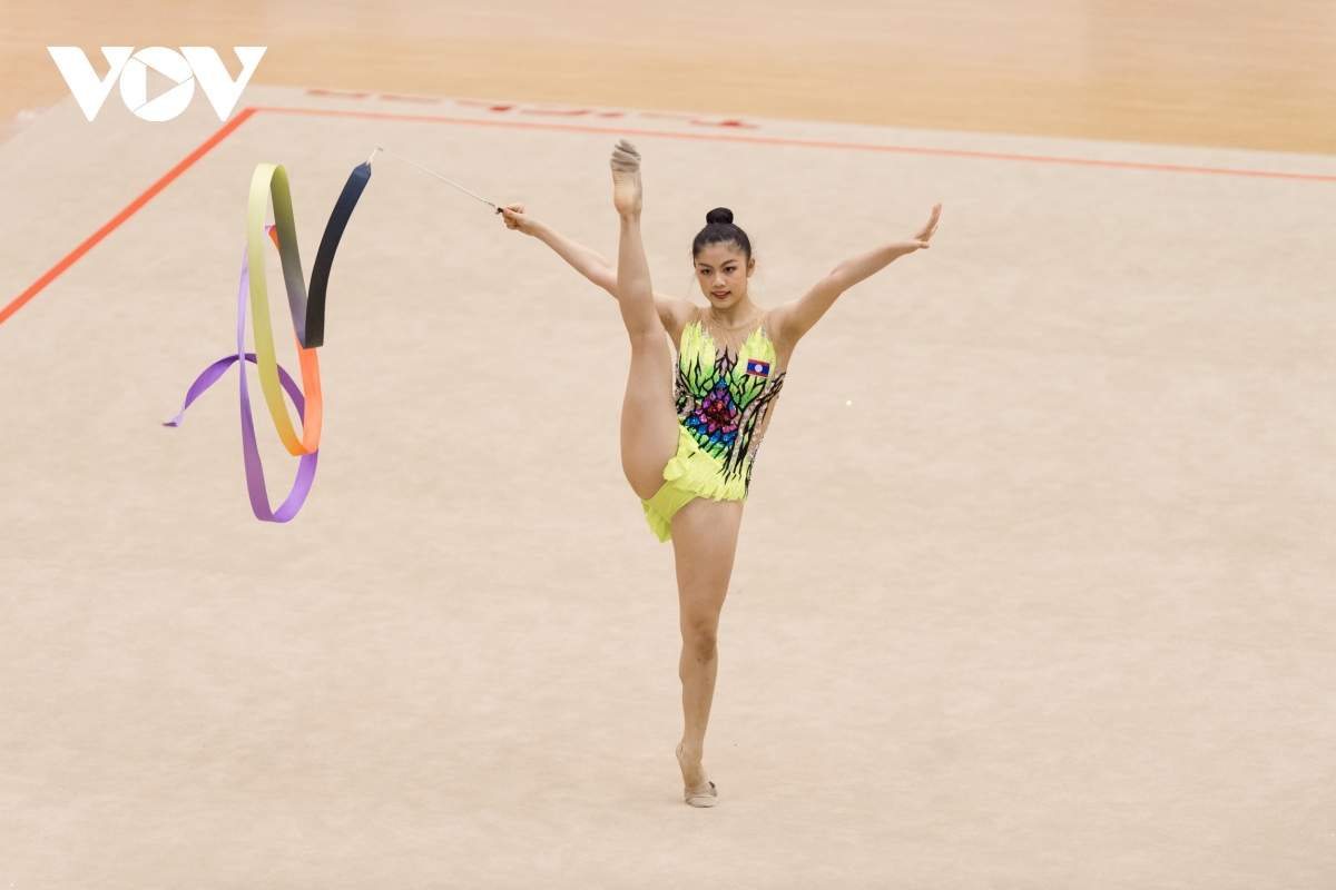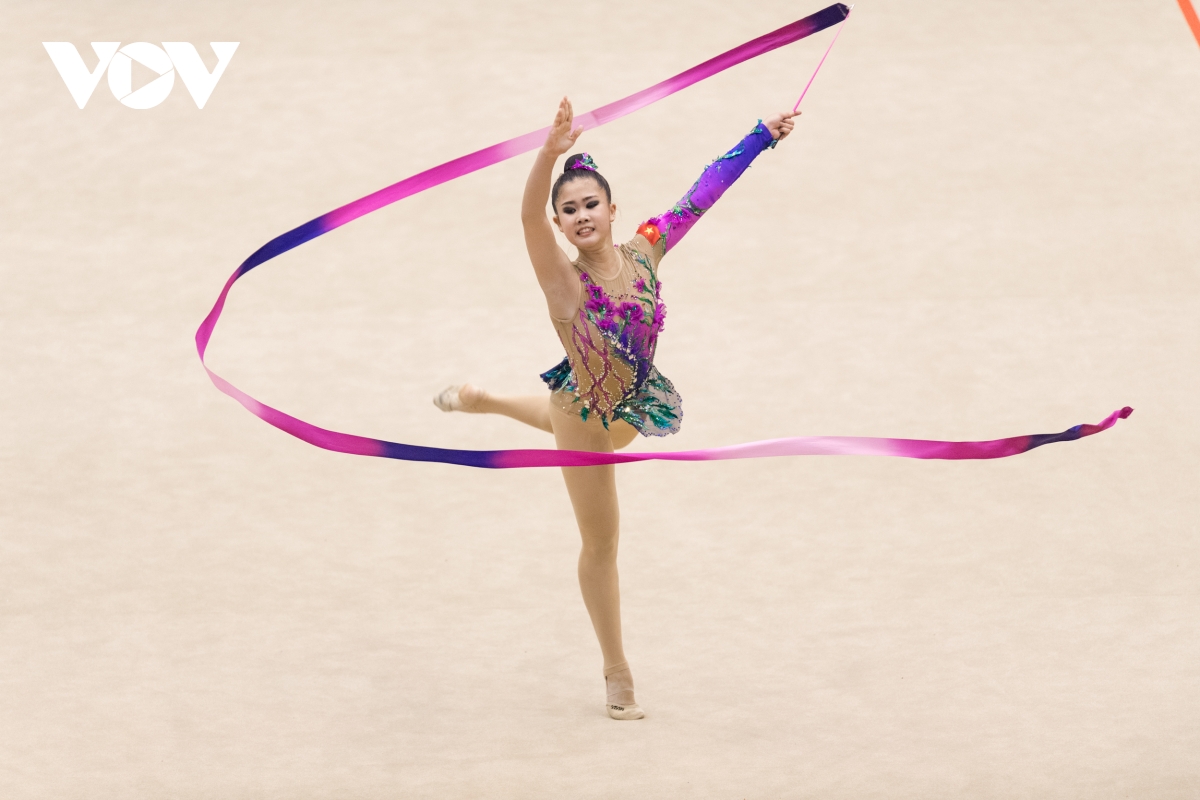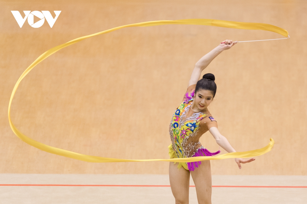 Trong ngày thi đấu đầu tiên, có 16 vận động viên đến từ 6 nước Malaysia, Thái Lan, Singapore, Lào, Philipines và Việt Nam, tham gia thi đấu vòng loại cá nhân toàn năng ở các nội dung vòng, bóng, chùy, lụa. |