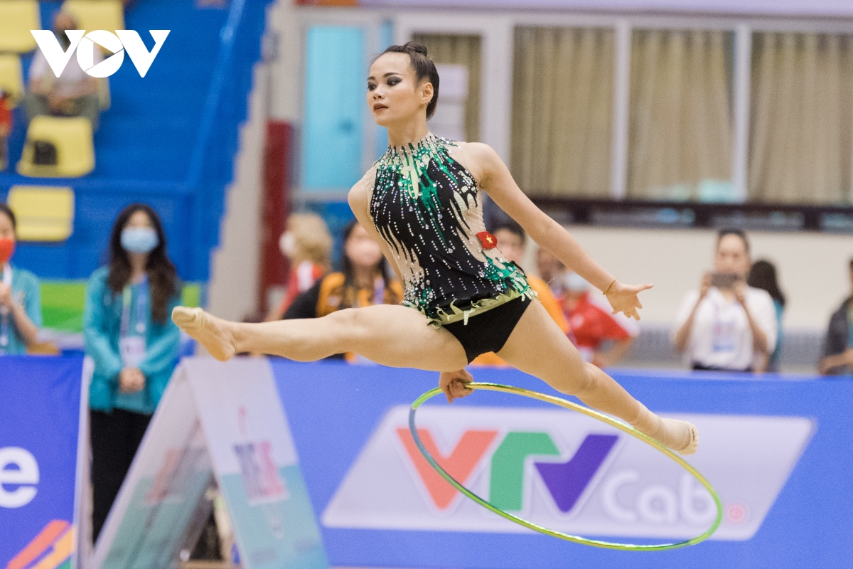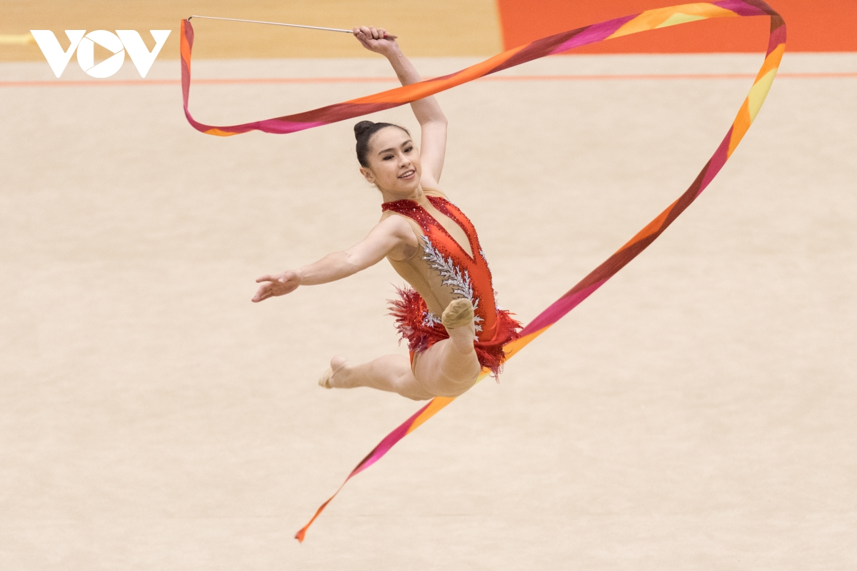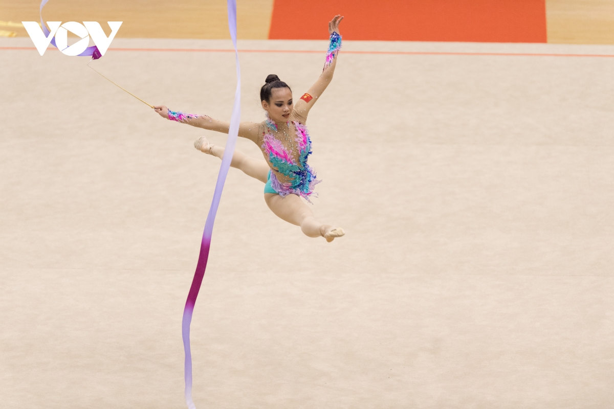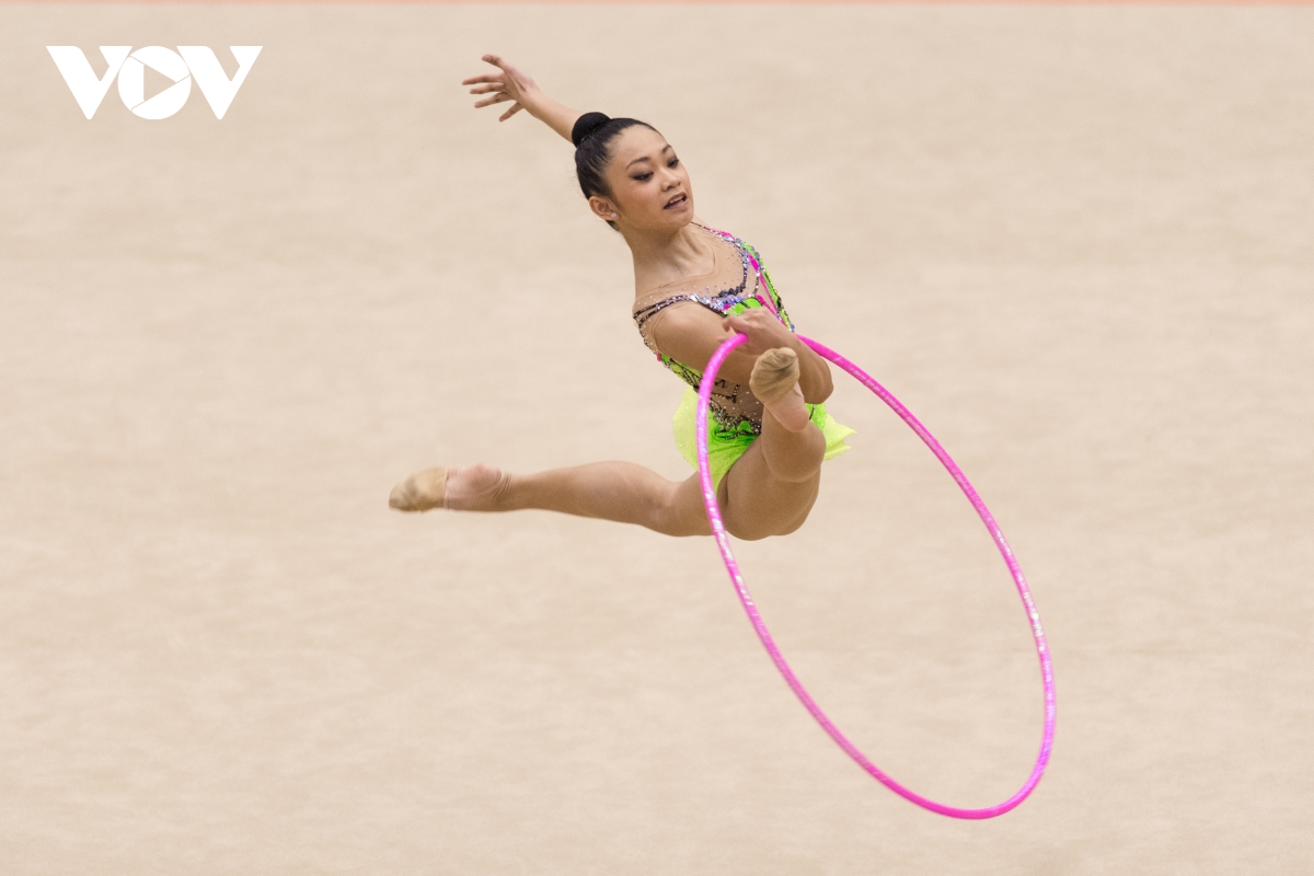 Trong ngày thi đấu đầu tiên, có 16 vận động viên đến từ 6 nước Malaysia, Thái Lan, Singapore, Lào, Philipines và Việt Nam, tham gia thi đấu vòng loại cá nhân toàn năng ở các nội dung vòng, bóng, chùy, lụa. |