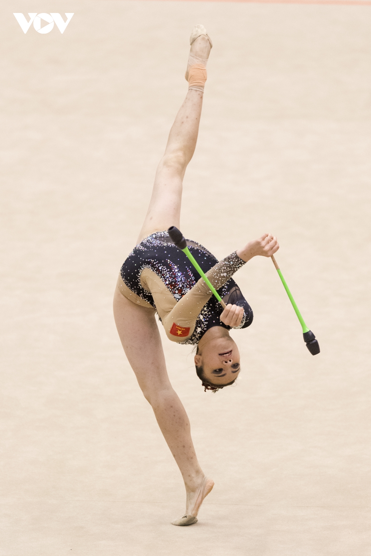 VĐV Đoàn Hồng Nhung trong phần thi với vòng |