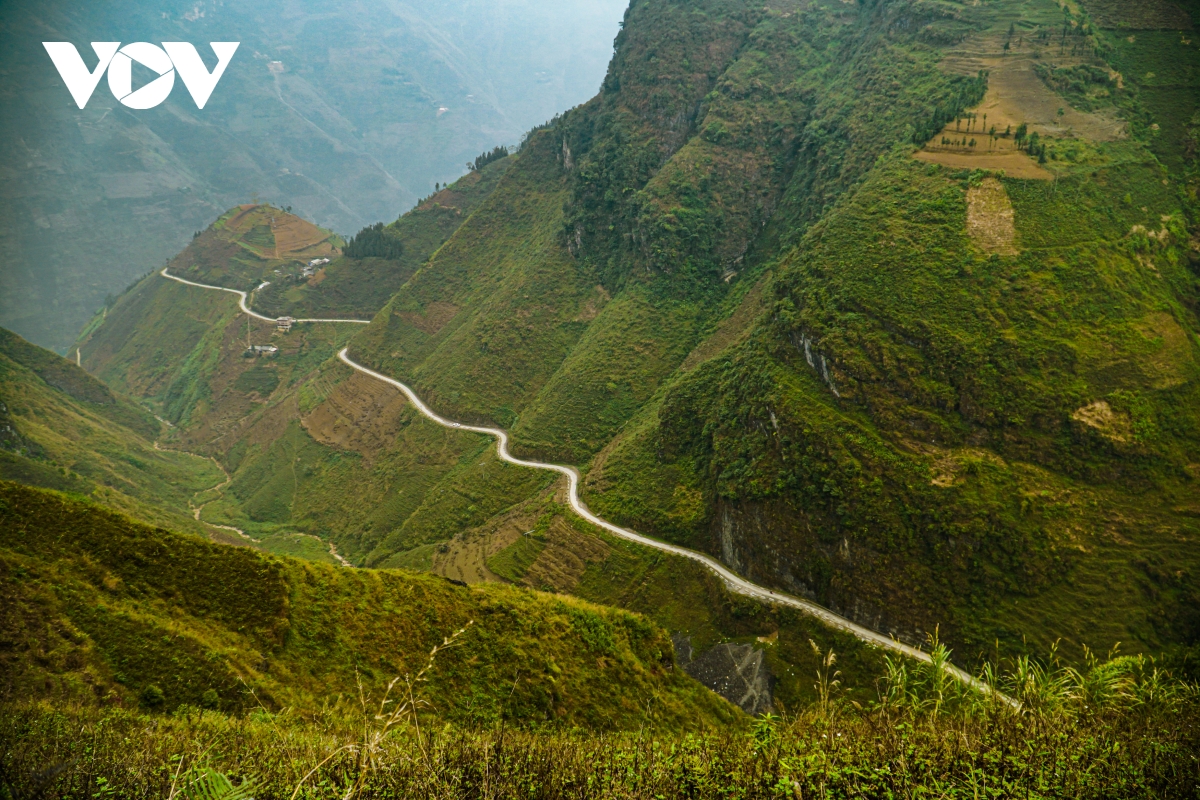 | Cung đường quanh co mềm mại ở thung lũng Sủng Là. |