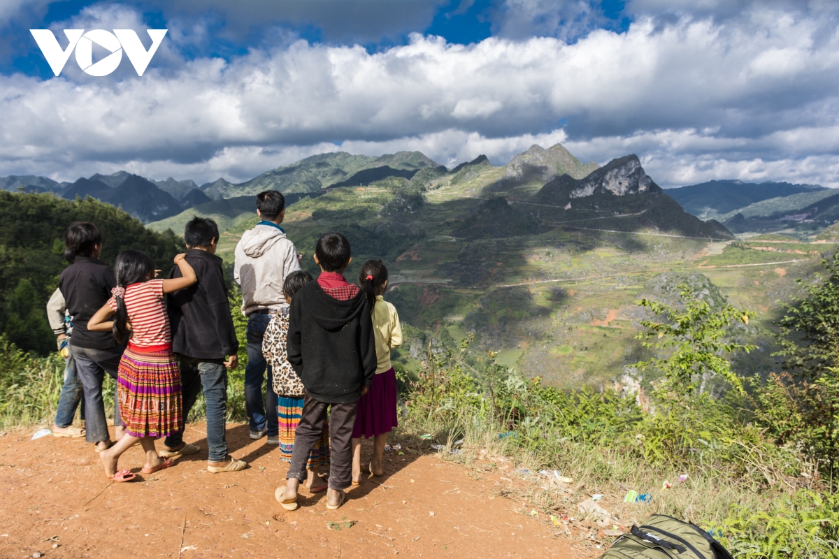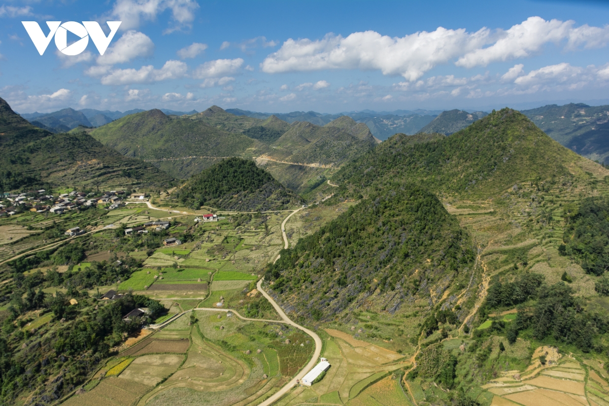 | Vòng cung đường ôm lấy bản làng đoạn từ Mậu Duệ sang Du Già thuộc huyện Yên Minh. |