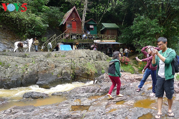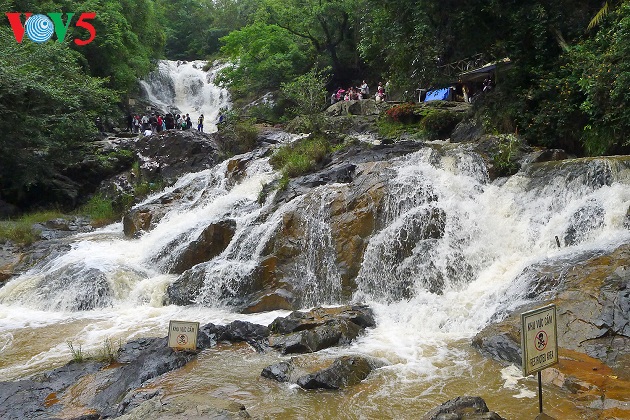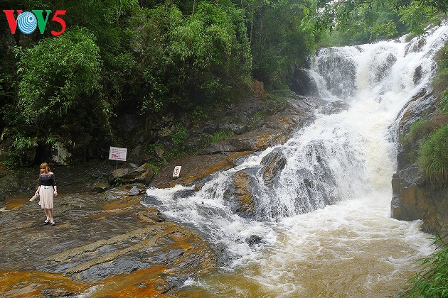 Thác Prenn, thuộc tỉnh Lâm Đồng, mang vẻ duyên dáng như một màn nước đổ nhè nhẹ từ độ cao 10 m xuống một hồ nước nhỏ. |