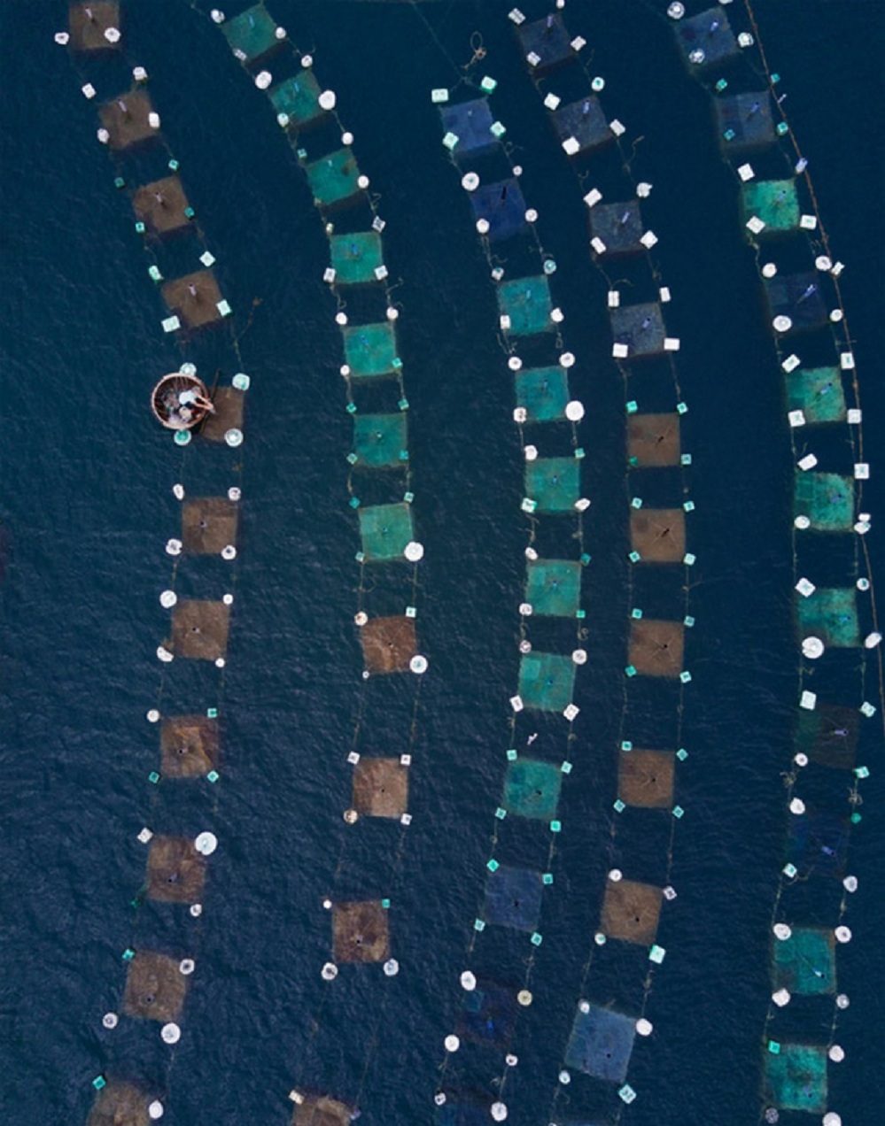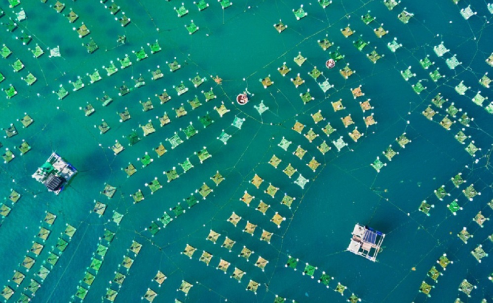 Hệ thống lồng nuôi tôm hùm nhìn từ trên cao của người dân ở Hòn Yến. Ảnh: Cao Kỳ Nhân