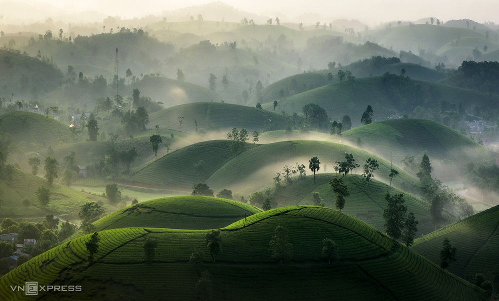 Long Cốc được đánh giá là một trong những đồi chè đẹp nhất Việt Nam, với hàng trăm, hàng ngàn quả đồi nhỏ. Mỗi đồi chè rộng khoảng 1ha. Ảnh: Vnexpress |