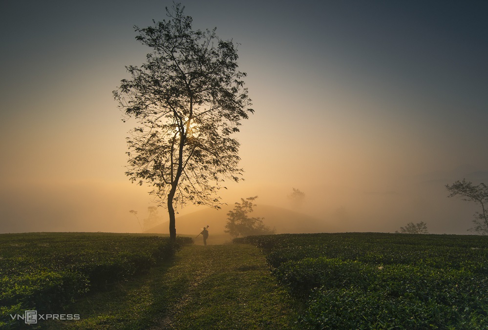 Mỗi buổi sớm tinh mơ, khi mặt trời còn chưa ló rạng, cả đồi chè Long Cốc chìm trong lớp sương mờ. Ảnh: Báo Dân trí |