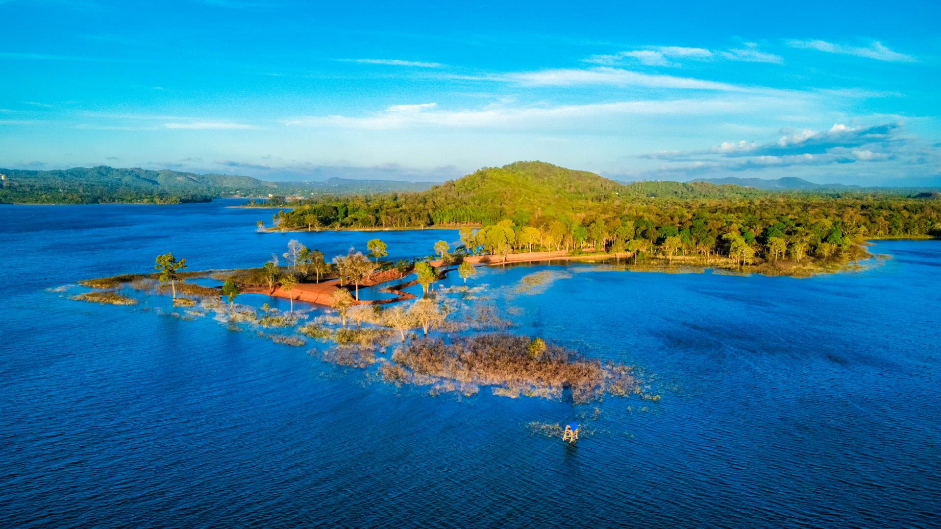 Giữa hồ Ea Kao - lâm viên Ea Kao - như một bán đảo thu nhỏ với vẻ đẹp hoang sơ, tạo cảm giác thoải mái, nhẹ nhàng.