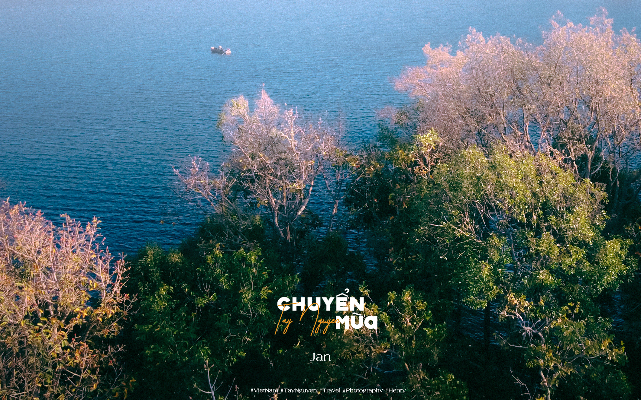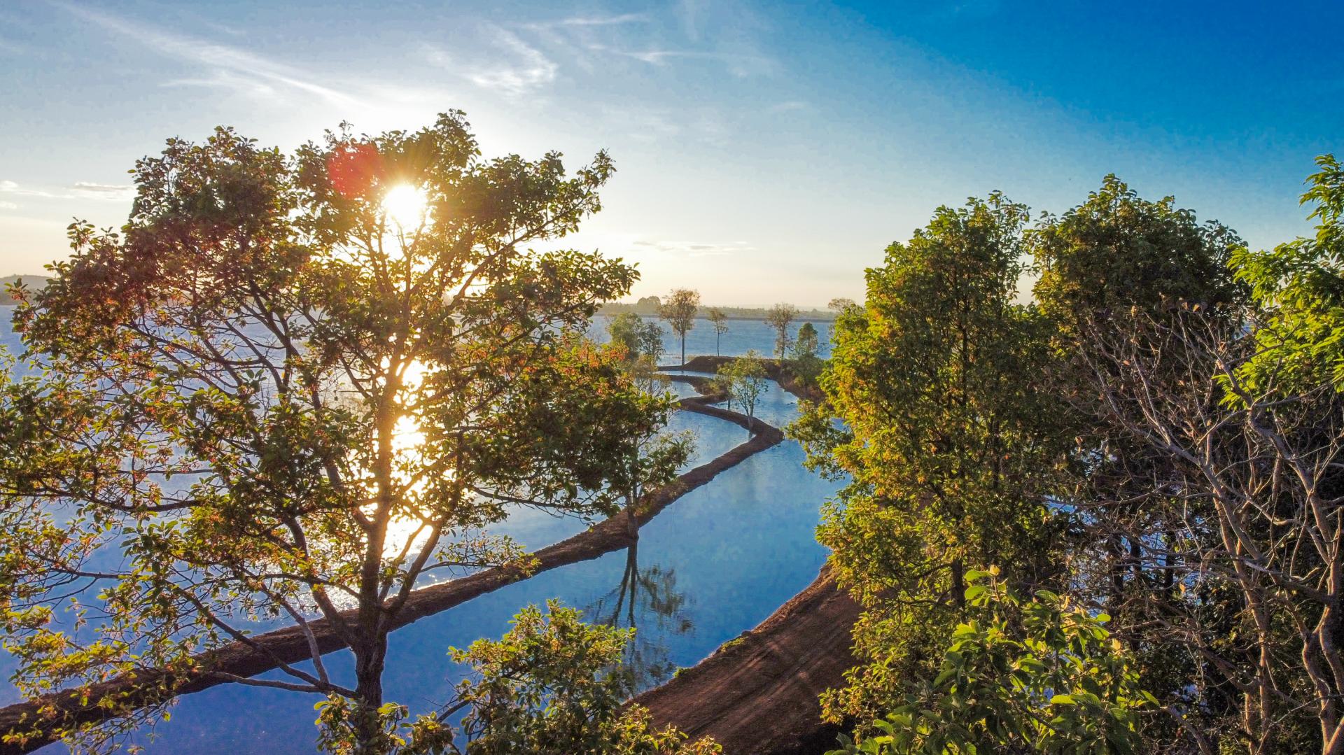 Khung cảnh mặt nước trong xanh đan xen với rừng cây mùa thay lá khiến Ea Kao trở nên thơ mộng hơn.