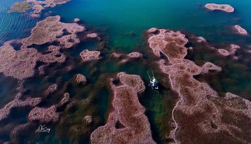 Khung cảnh lãng mạn ở hồ tảo hồng. Ảnh: kinhtemoitruong.vn