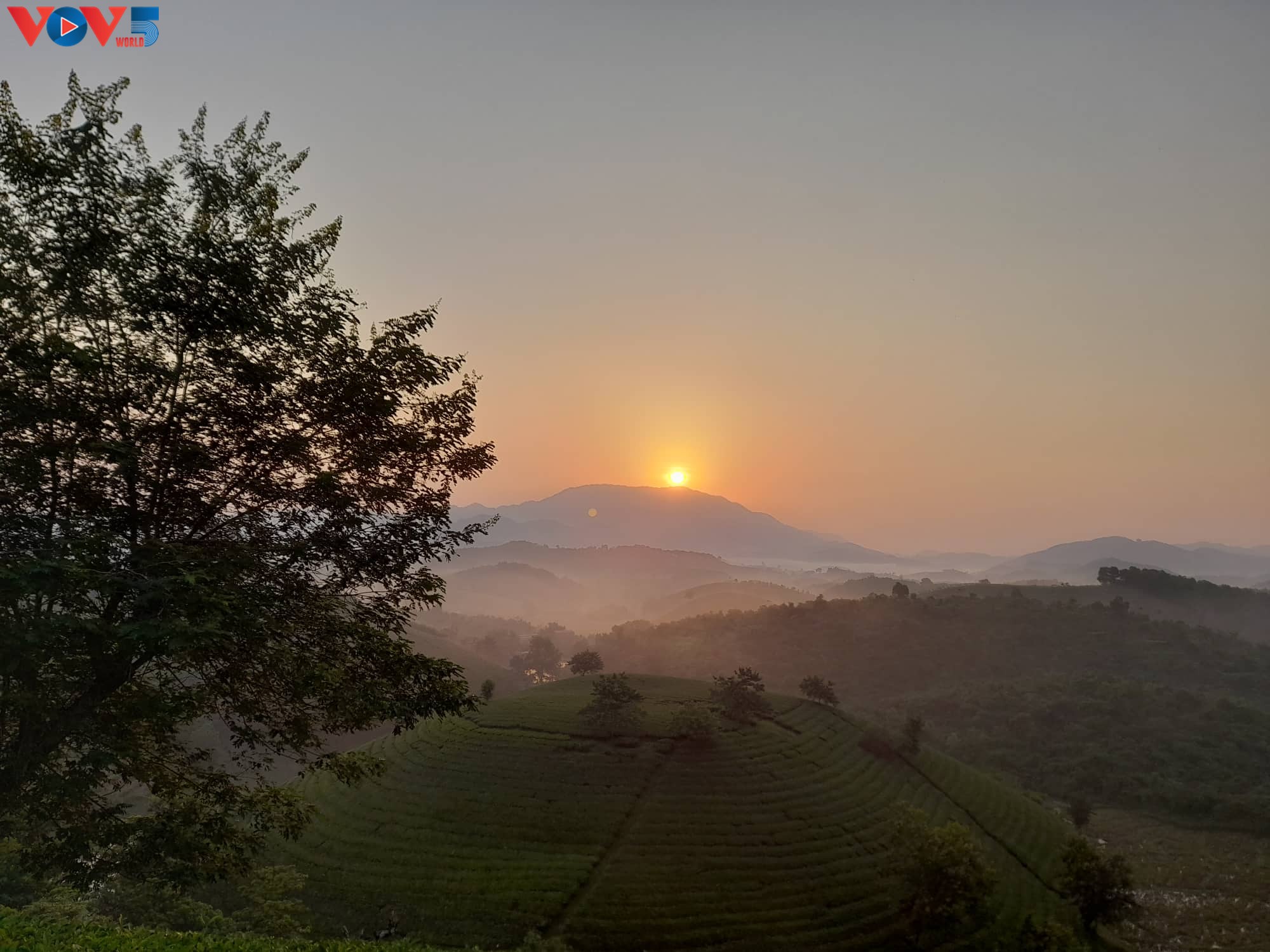 Thời điểm đẹp nhất trong 1 ngày để ngắm đồi chè Long Cốc là lúc bình minh và hoàng hôn. |