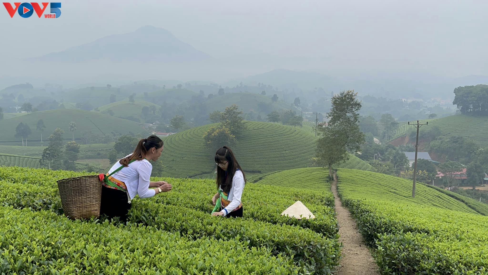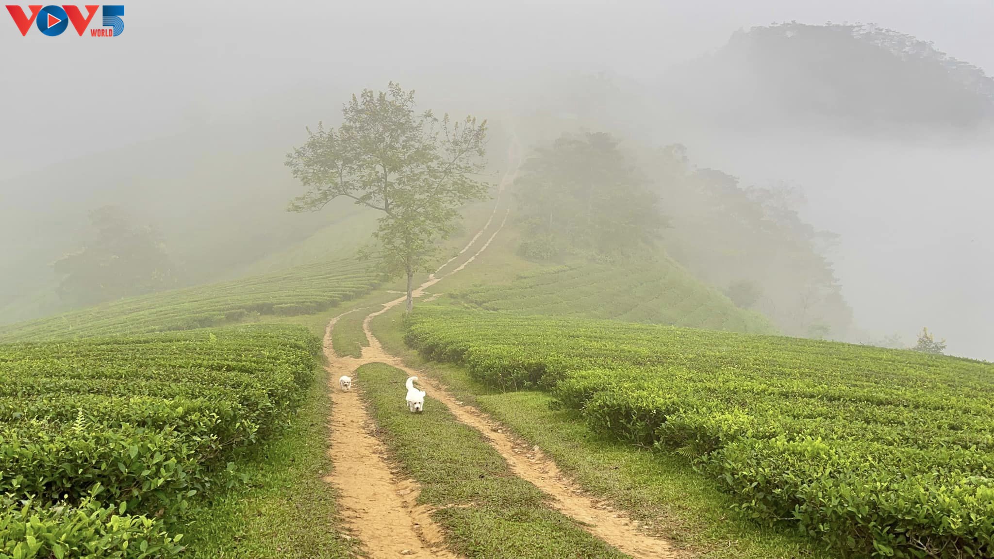 Đến đây, du khách như lạc vào không gian tiên cảnh, mê đắm trước vẻ đẹp trong trẻo, thuần khiết của cảnh sắc thiên nhiên với hơn 600ha chè trải dài bất tận nối tiếp nhau đến tận chân trời. |
