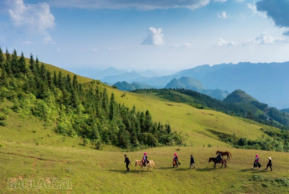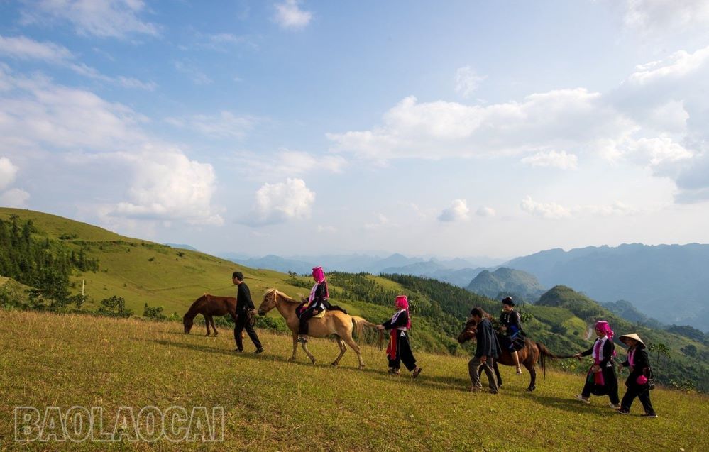 Bức tranh thiên nhiên và bản sắc dân tộc tại đồi cỏ may. Ảnh: Báo Lào Cai