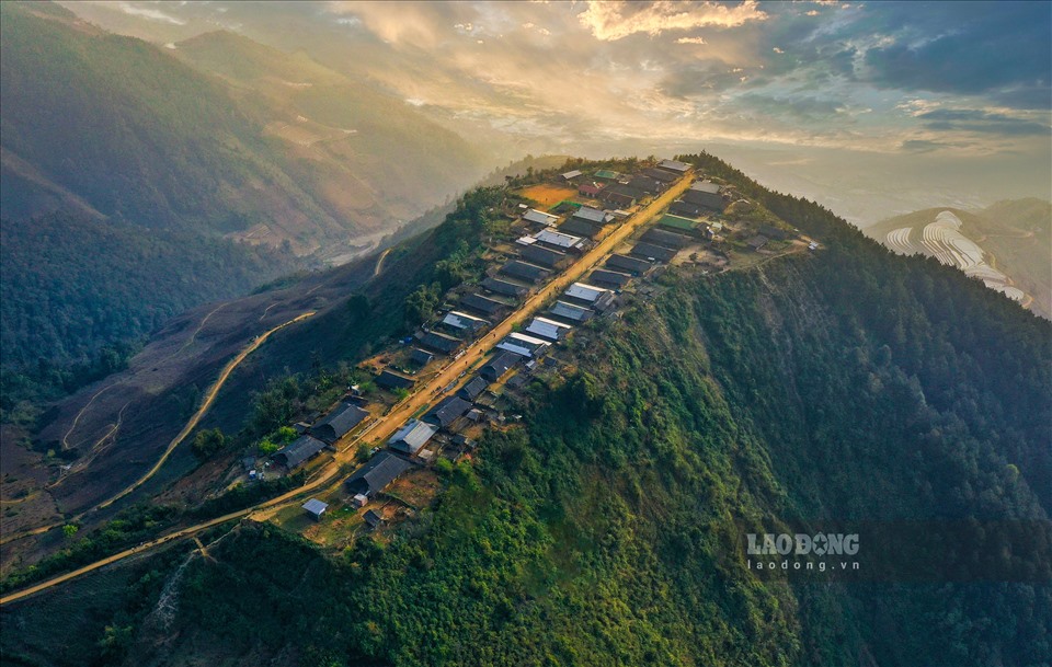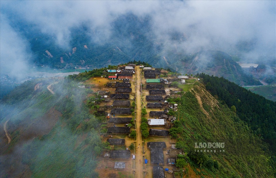Bản Cu Vai có địa thế tách biệt trên đỉnh một ngọn núi xa mờ, quanh năm mây mù bao phủ. Ảnh: laodong.vn