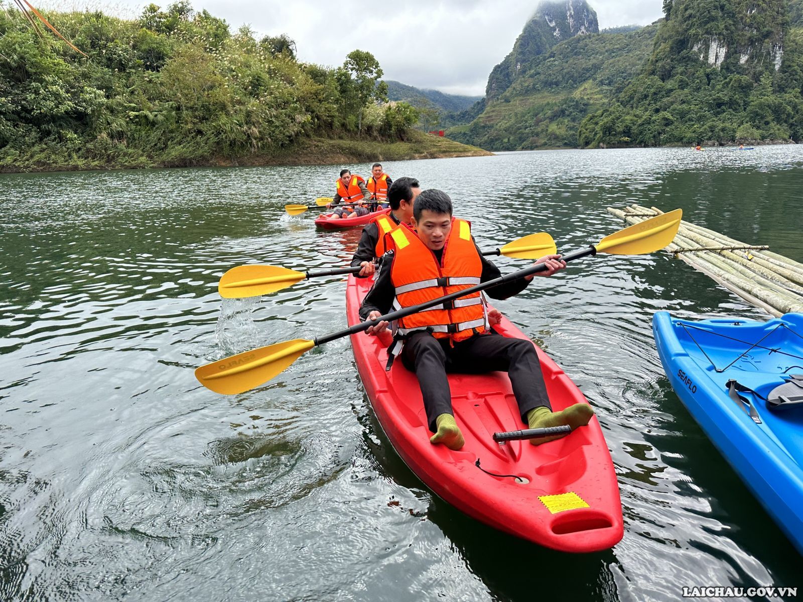 Du khách trải nghiệm chèo thuyền “kayak”. Ảnh: Báo Lai Châu