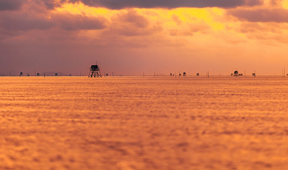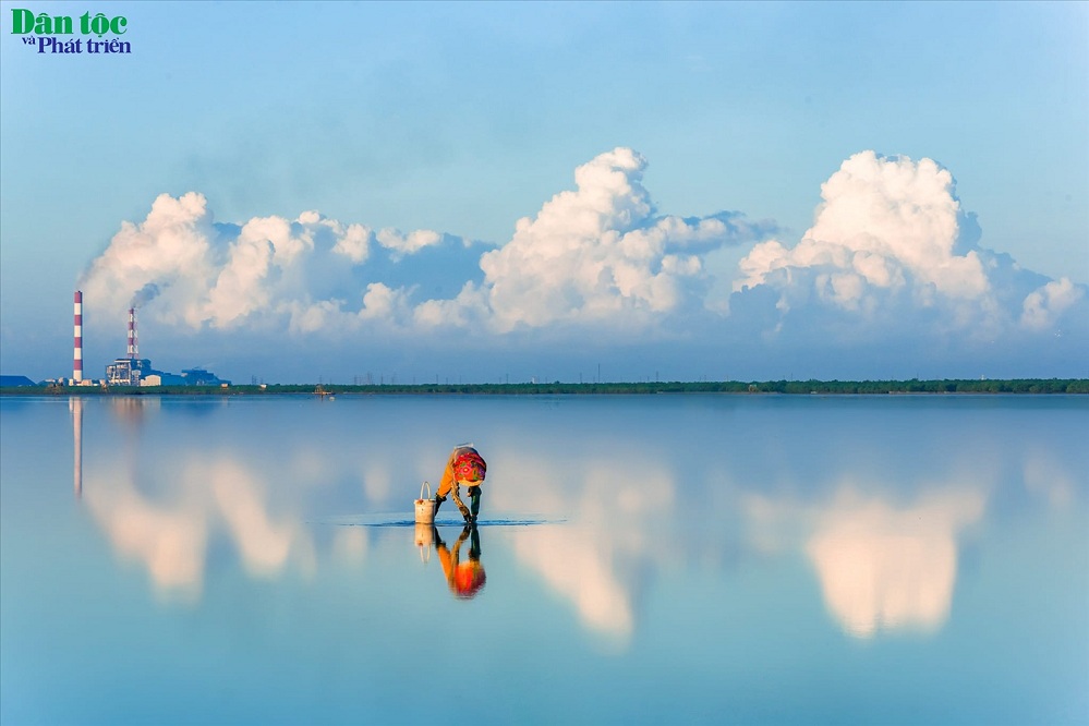 Cả bãi biển mênh mông như một tấm gương khổng lồ phản chiếu tất cả những gì phía trên xuống mặt nước tạo nên vẻ đẹp lung linh, kỳ thú. Ảnh: Tiến Nguyễn