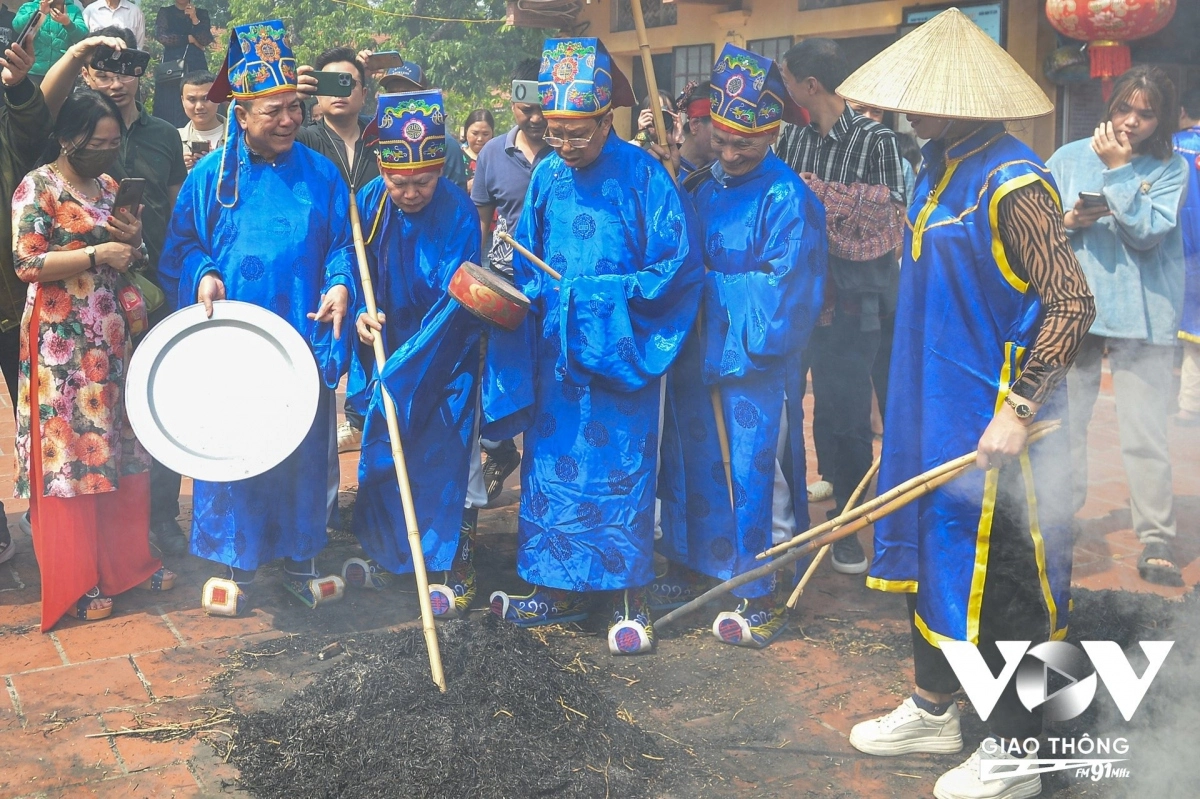 Trước hội thi, các đội phải chuẩn bị sẵn các vật dụng như chày, cối, rơm, nồi...