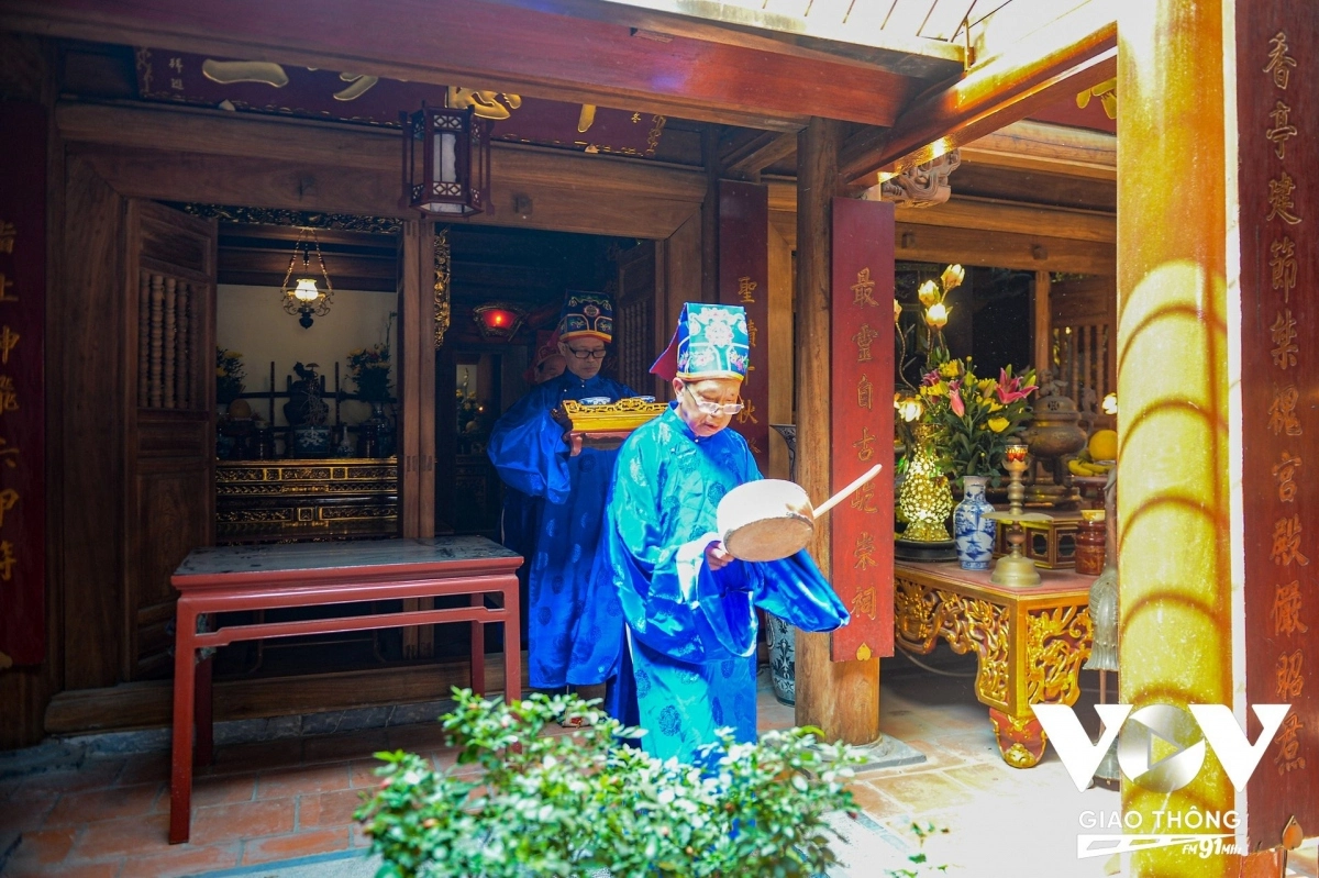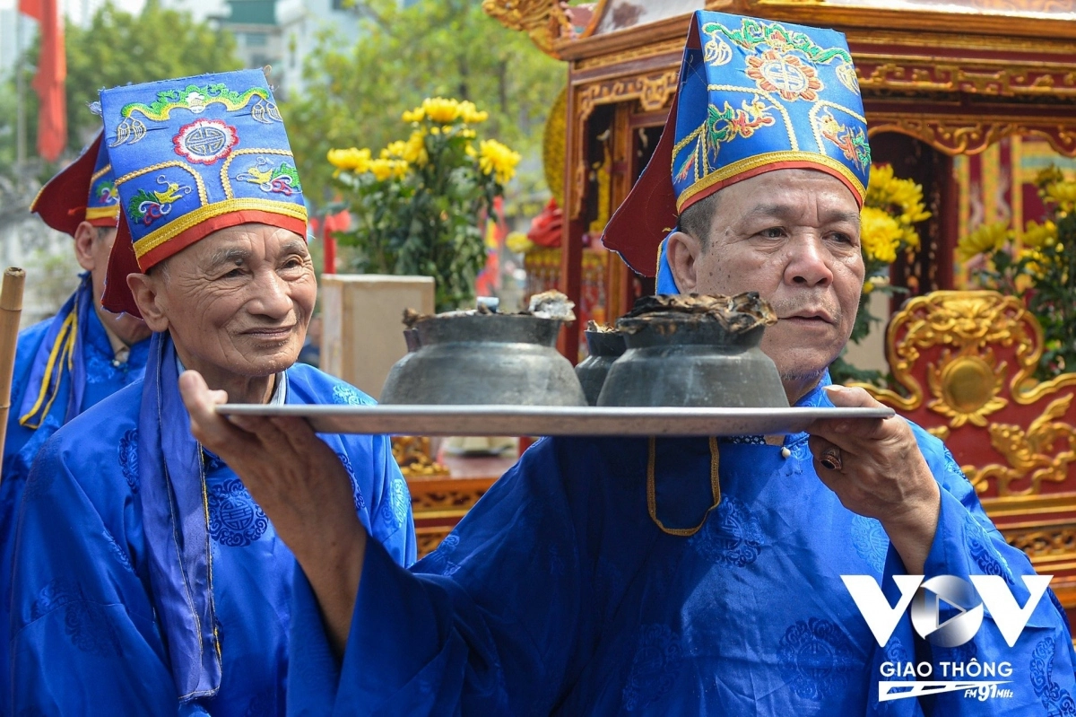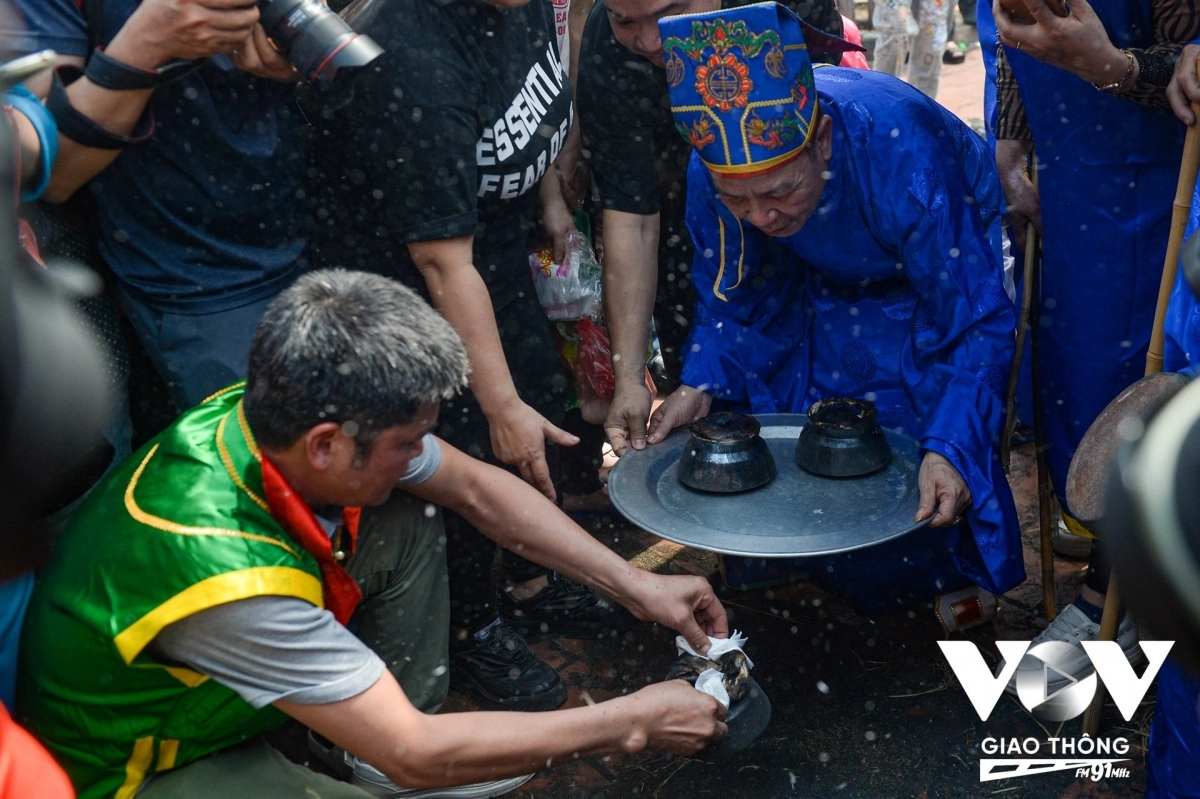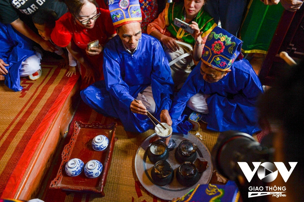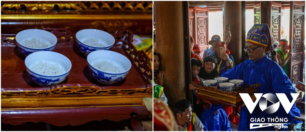 Ban giám khảo xới 4 bát dẻo thơm để dâng cúng Thành hoàng làng.
