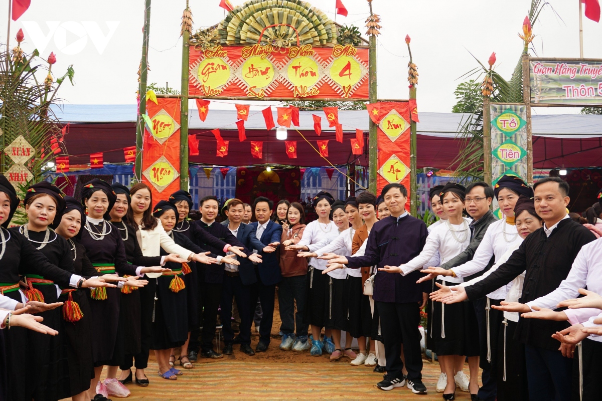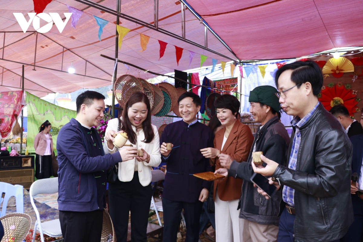 Các thôn cũng mang sản vật của địa phương giới thiệu với du khách |