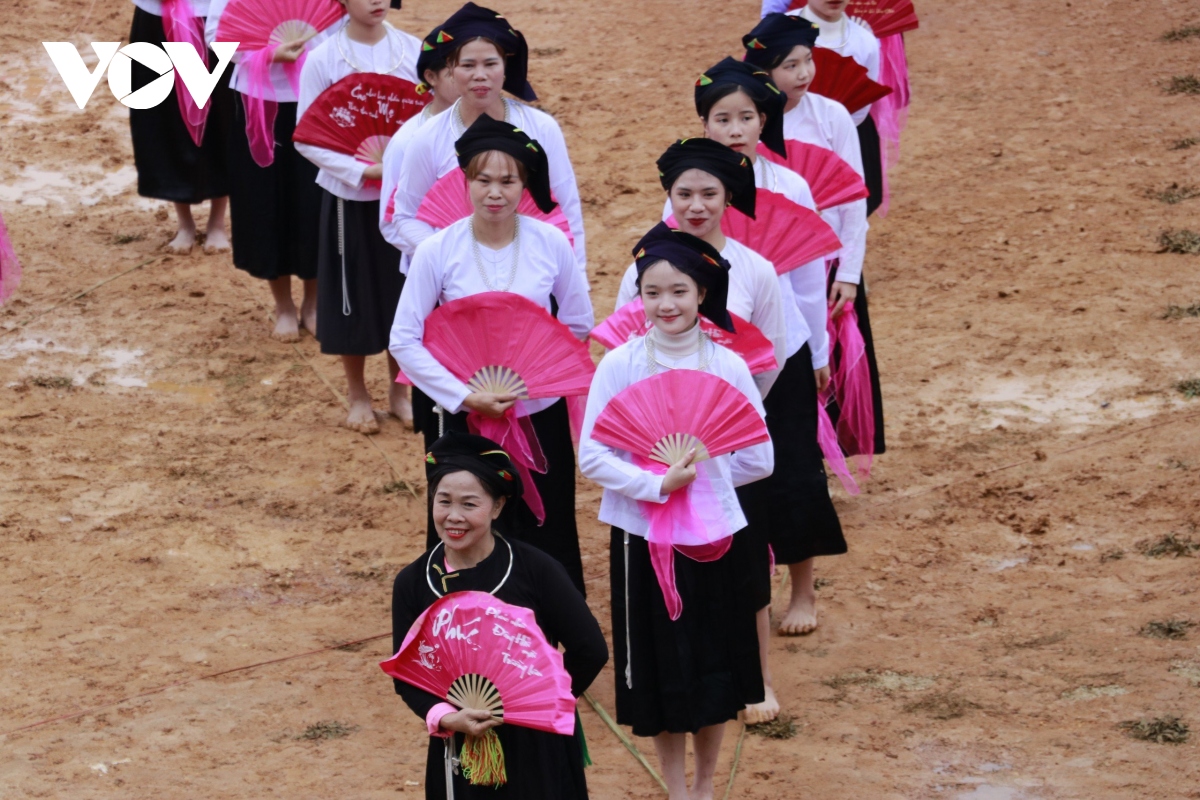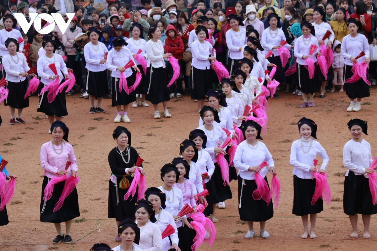 Các thiếu nữ Tày trong điệu múa rực rỡ của dân tộc mình |