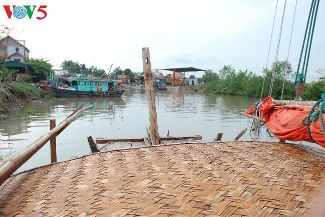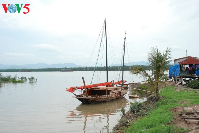 | Thuyền ba vách neo đậu trên dòng sông Chanh, một nhánh của Bạch Đằng Giang lịch sử. |