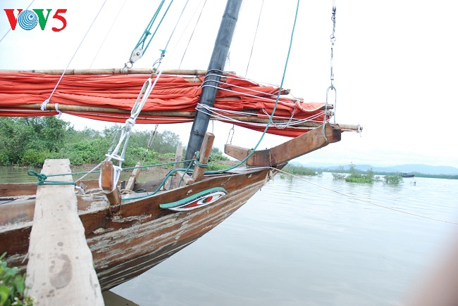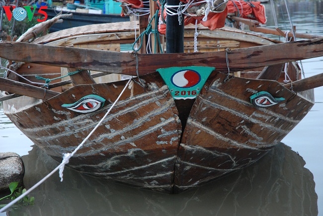 | Con thuyền ba vách vừa được đóng mới nhìn rất giống với những con thuyền trong các ảnh tư liệu mà người Pháp đã chụp, vẽ hồi cuối thế kỉ 19 đầu thế kỉ 20. |