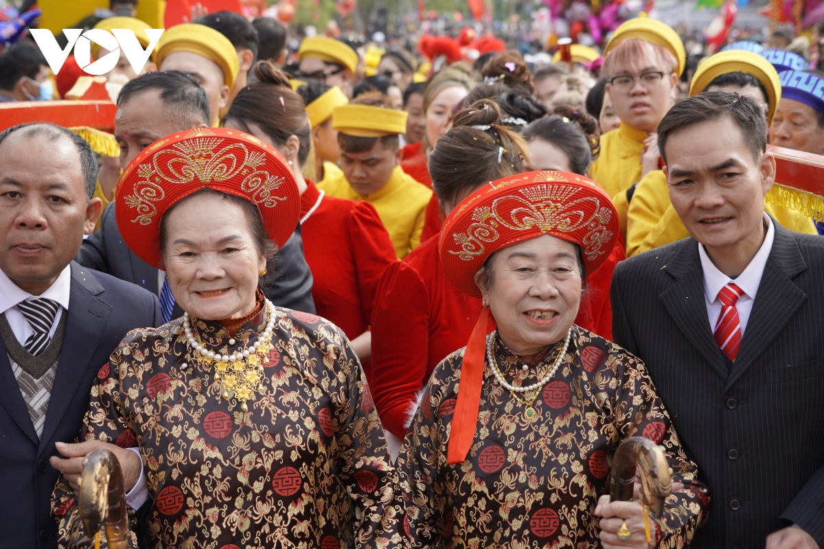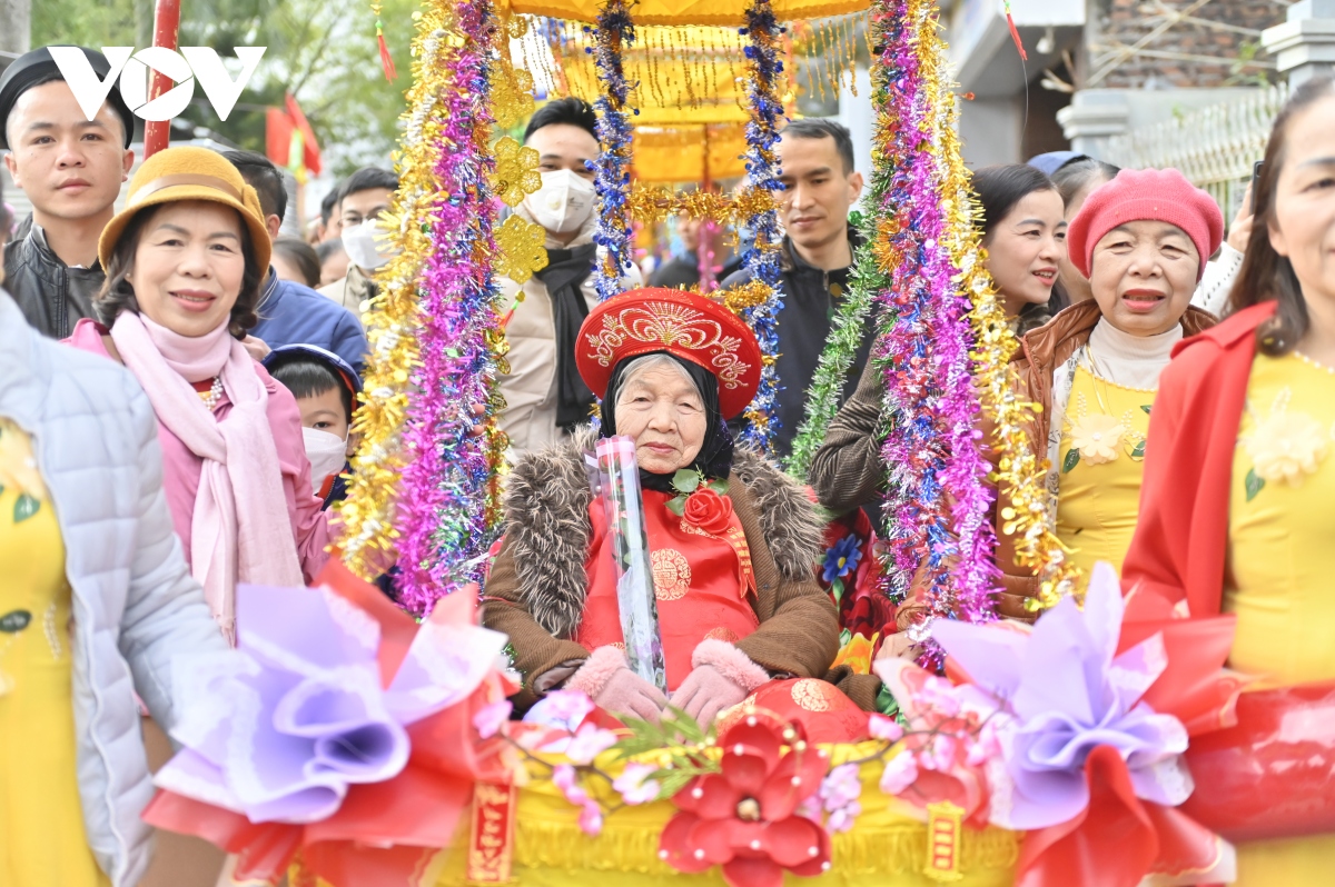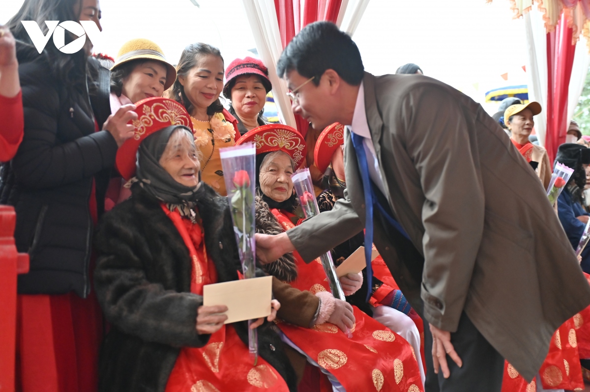 Nét độc đáo, hấp dẫn và được mọi người dân háo hức chờ đợi nhất là hoạt động rước các cụ thượng thọ tròn 80, 90 và 100 tuổi lên miếu Tiên Công.