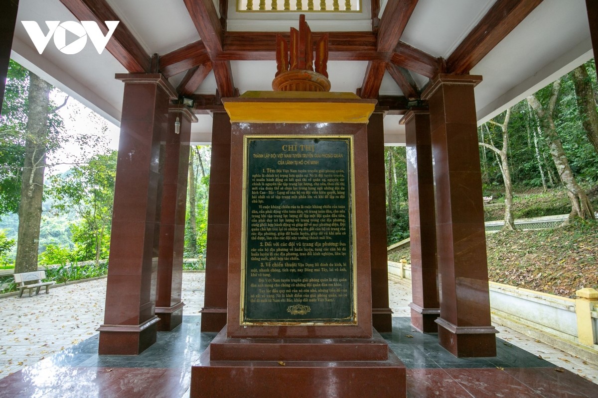 Nơi diễn ra buổi lễ thành lập Đội VNTTGPQ có 4 tấm bia ghi chép lại tên tuổi, quê quán 34 chiến sĩ đầu tiên cũng như các Chỉ thị và 10 Lời thề danh dự của Đội VNTTGPQ. |