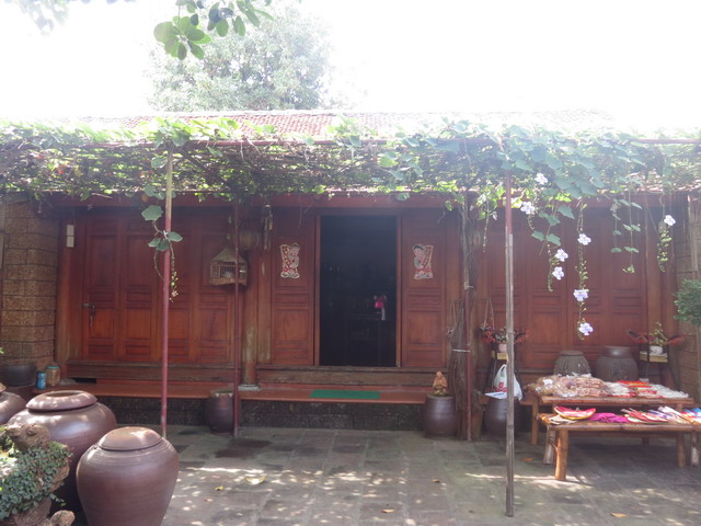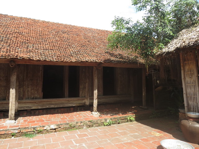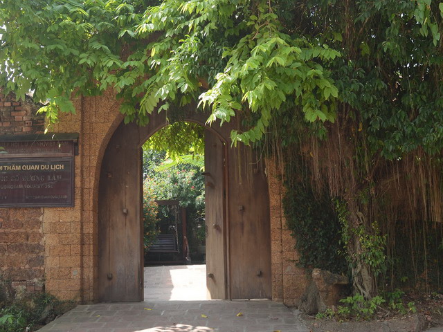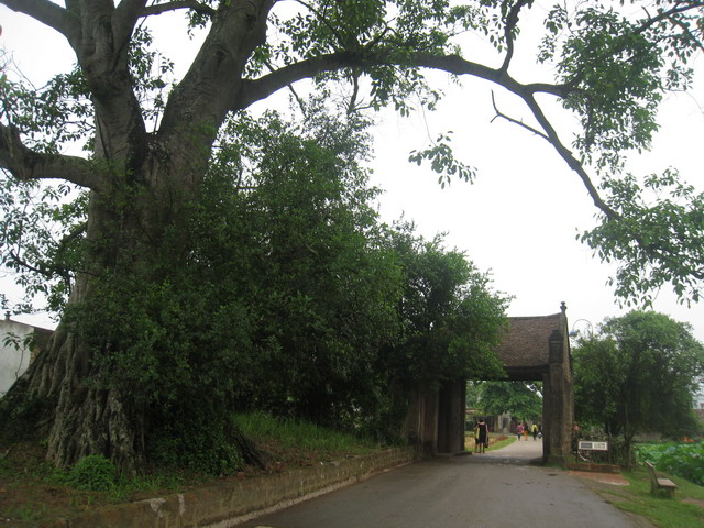 Cổng làng Mông Phụ xây bằng đá ong. Bên trái là cây đa cổ thụ tỏa bóng mát. Cổng làng được xây dựng từ năm 1833, phía trên tựa dòng chữ “Thế hữu hưng ngơi đại”, tạm dịch là thời nào cũng có người tài. |