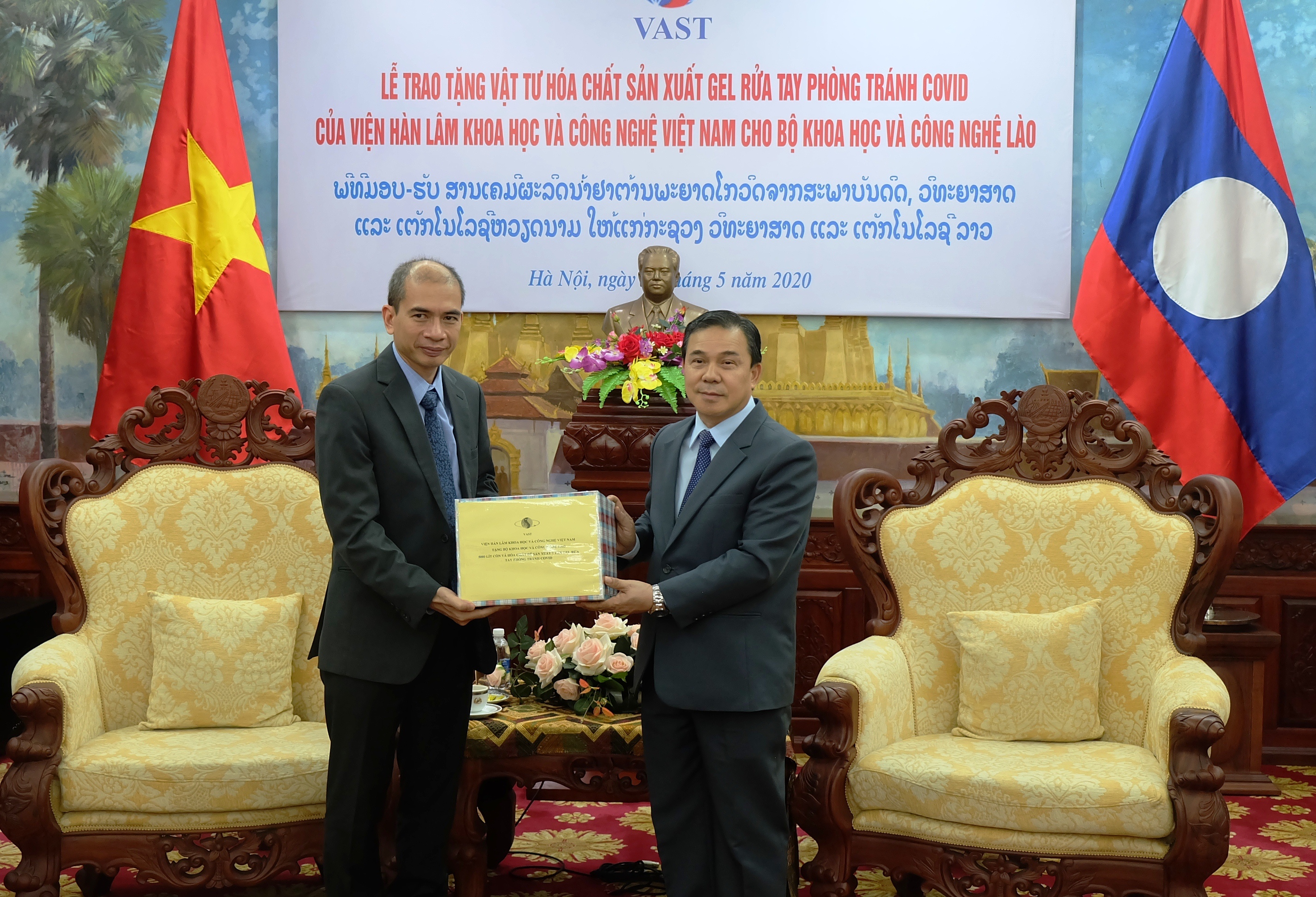 Ngày 22/5/2020, tại trụ sở của Đại sứ quán Lào tại Việt Nam đã diễn ra Lễ trao tặng vật tư hóa chất sản xuất Gel rửa tay phòng tránh COVID của Viện Hàn lâm Khoa học và Công nghệ Việt Nam cho Bộ Khoa học và Công nghệ Lào.