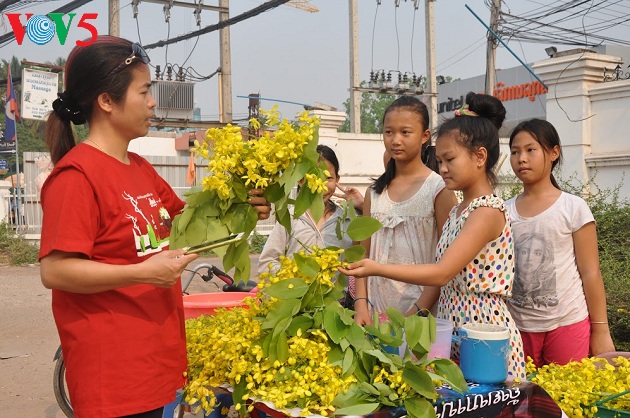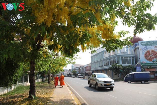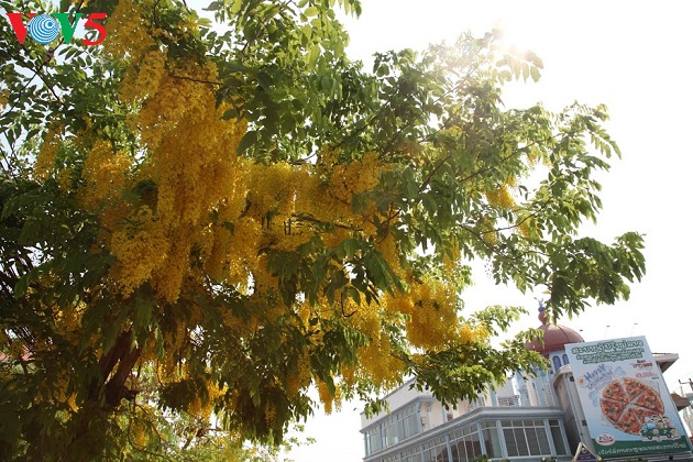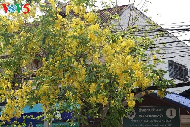 | Khắp phố phường Vietntiane vàng rực sắc hoa. |