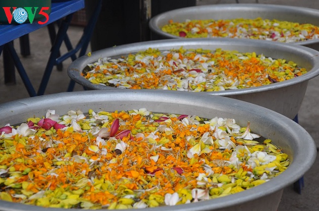 | Người dân thường mua hoa, hái hoa mang ra chùa để lễ Phật, cầu chúc năm mới được bình an may mắn. |