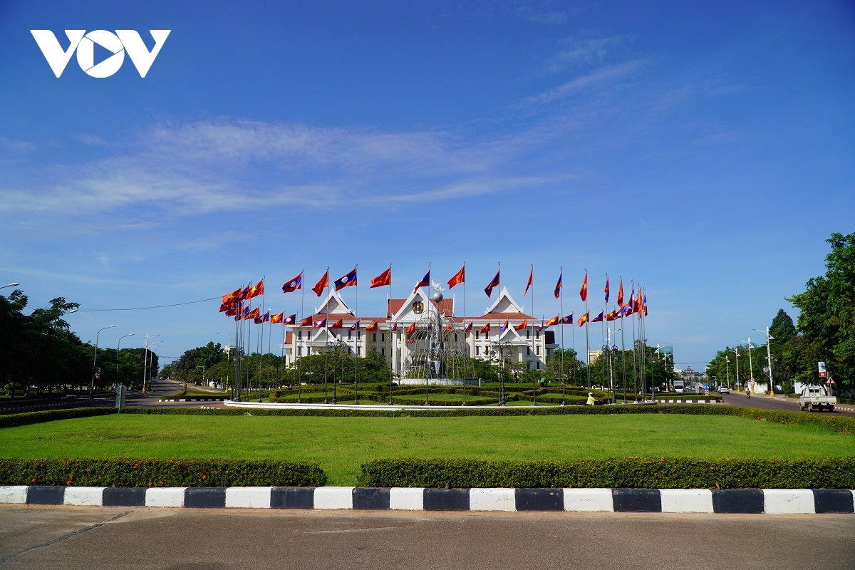 (VOV5) -Thủ đô Vientiane rực rỡ cờ hoa trước thềm chuyến thăm hữu nghị chính thức nước CHDCND Lào của Chủ tịch nước Nguyễn Xuân Phúc và Phu nhân cùng Đoàn đại biểu cấp cao Đảng, Nhà nước Việt Nam.