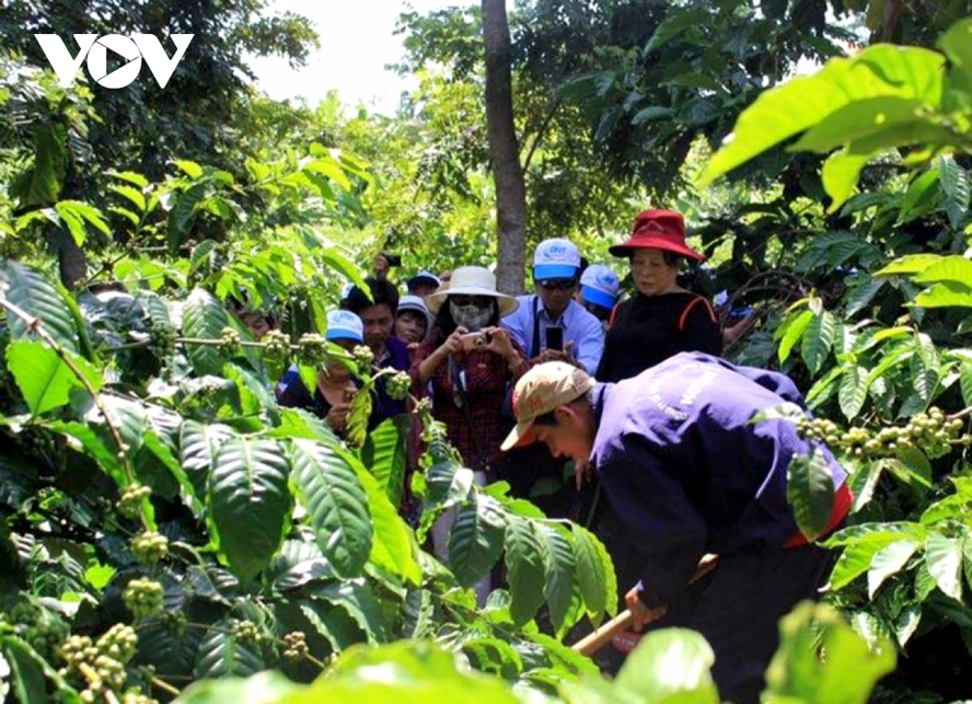 Du lịch trải nghiệm tìm hiểu quá trình sản xuất cà phê hữu cơ tại khu du lịch sinh thái Ko Tam (Buôn Ma Thuột). Ảnh: VOV |