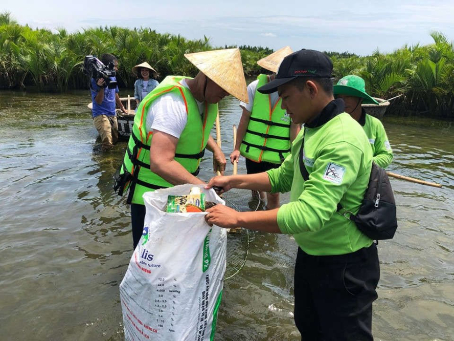 Du khách nước ngoài tham gia tour du lịch dọn rác trên sông ở Hội An. Ảnh: baotainguyenmoitruong.vn |