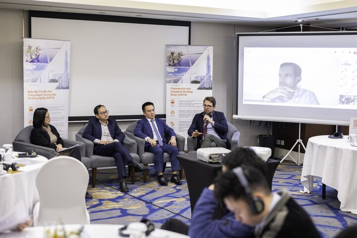 | Các diễn giả tham gia phiên thảo luận về cơ hội và thách thức của điện mặt trời mái nhà tại Việt Nam. |