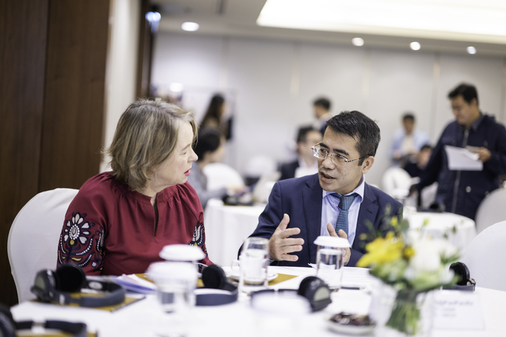 | Giám đốc GIZ Việt Nam và đại diện của Cục Điện lực và Năng lượng tái tạo trao đổi tại sự kiện. |