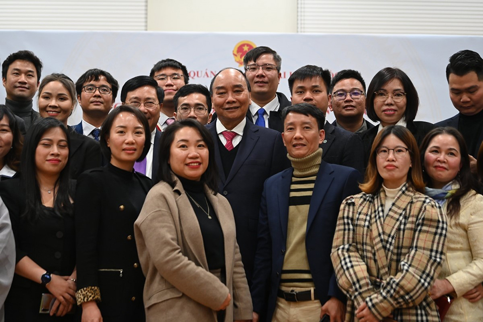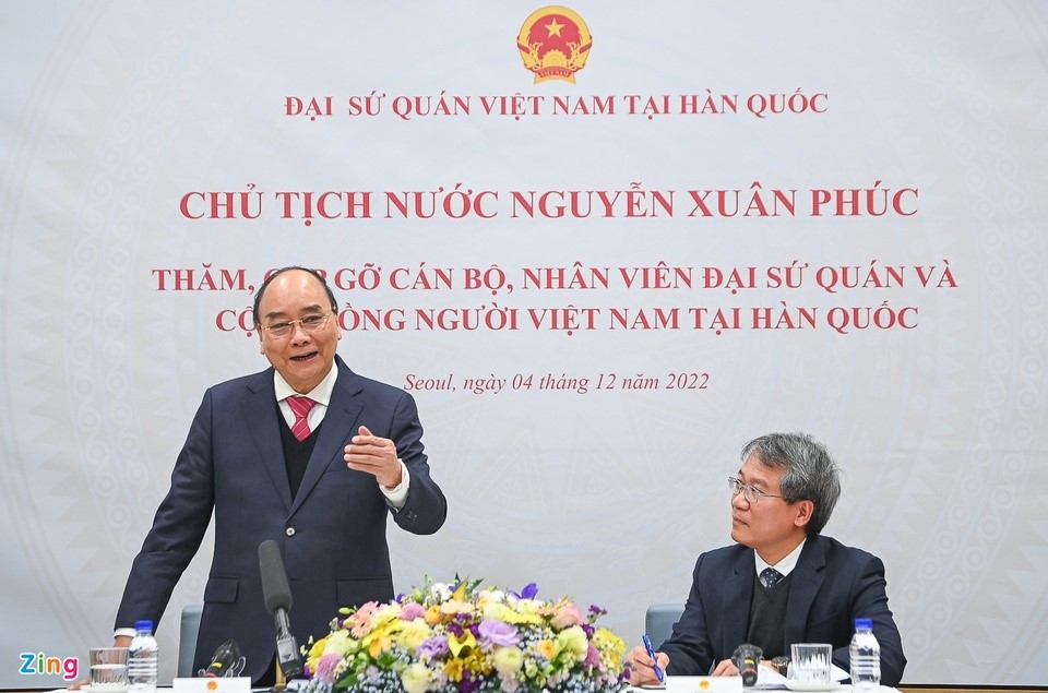 Trước đó, trong lịch trình làm việc ngày 4/12, Chủ tịch nước Nguyễn Xuân Phúc đã thăm, gặp gỡ cán bộ, nhân viên Đại sứ quán Việt Nam và cộng đồng người Việt Nam tại Hàn Quốc. Chủ tịch nước mong muốn bà con kiều bào tại Hàn Quốc nâng cao tầm trí tuệ cuả người Việt Nam tại một nước phát triển như Hàn Quốc, đóng góp phát triển nước sở tại và hướng về xây dựng quê hương, đất nước.