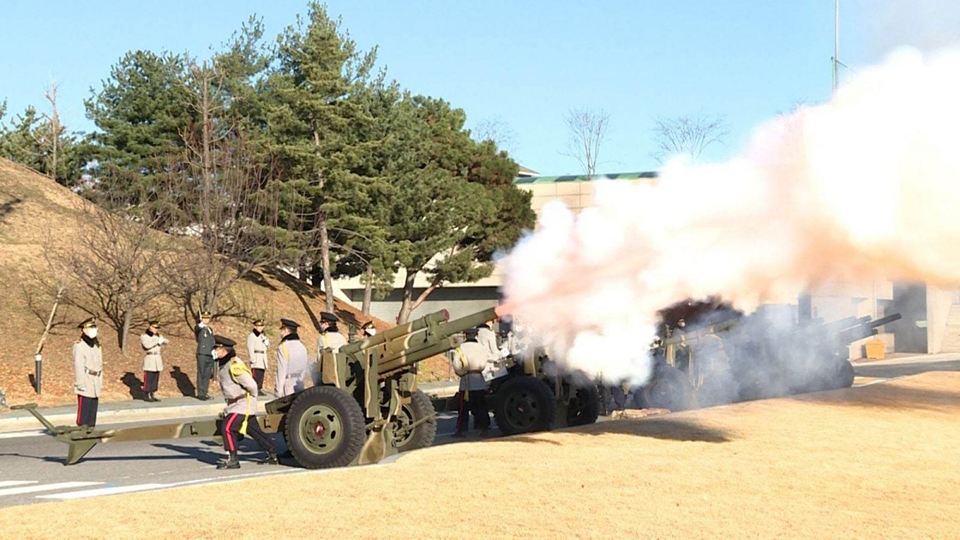 Hàn Quốc bắn đại bác chào mừng Chủ tịch nước Nguyễn Xuân Phúc và đoàn cấp cao Việt Nam. Ảnh: Vũ Dũng/ VOV |