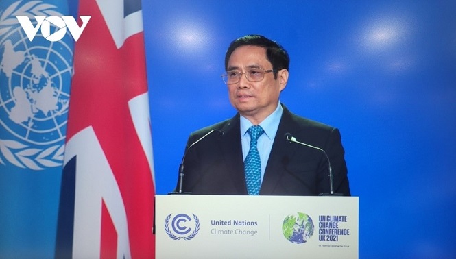 Chiều 1/11/2021 (giờ Vương quốc Anh), Thủ tướng Chính phủ Phạm Minh Chính đã có bài phát biểu quan trọng trong ngày đầu tiên của Hội nghị Thượng đỉnh khí hậu được tổ chức trong khuôn khổ Hội nghị lần thứ 26 các Bên tham gia Công ước khung của Liên Hiệp Quốc về Biến đổi khí hậu (COP26). Ảnh: VOV |
