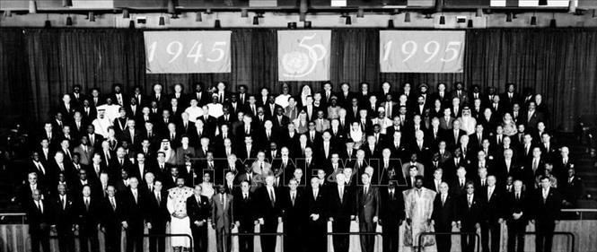 Người đứng đầu nhà nước và Chính phủ các nước tham dự khóa họp đặc biệt của Đại hội đồng LHQ nhân Kỷ niệm 50 năm Ngày thành lập LHQ (1995). Ảnh: TTXVN |