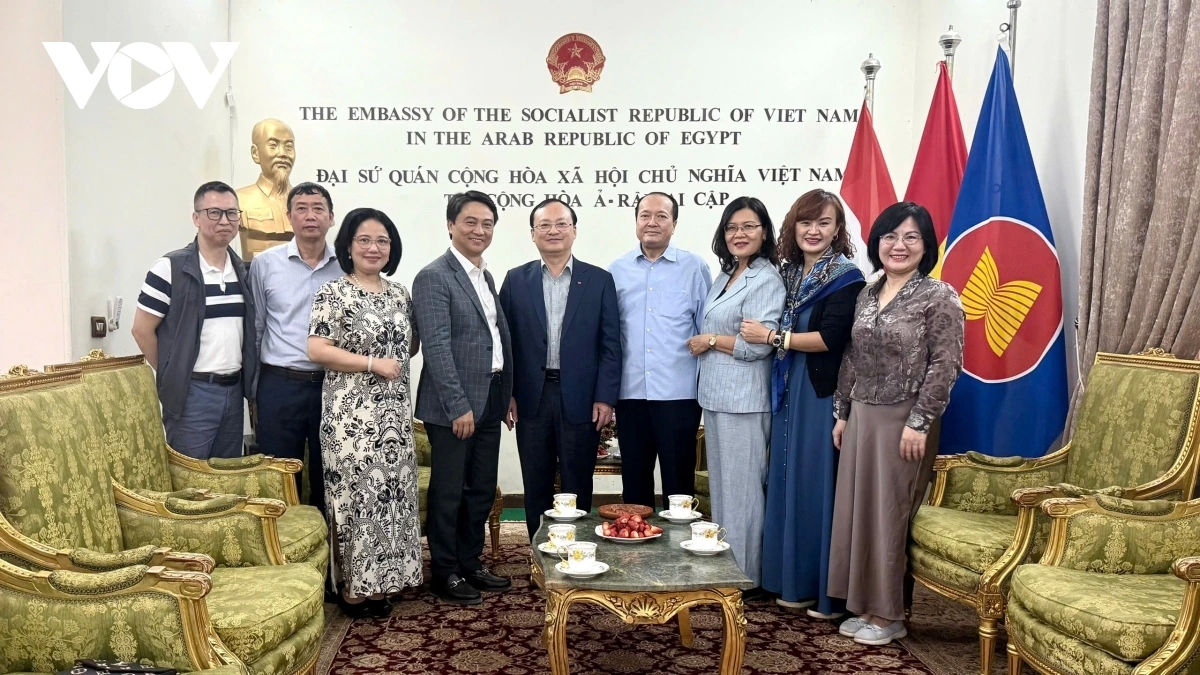 | Đoàn công tác của Đài Tiếng nói Việt Nam (VOV) do Tổng Giám đốc Đỗ Tiến Sỹ dẫn đầu đã đến thăm và làm việc với đại sứ quán Việt Nam tại Ai Cập. |
