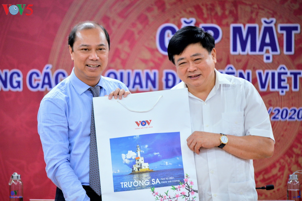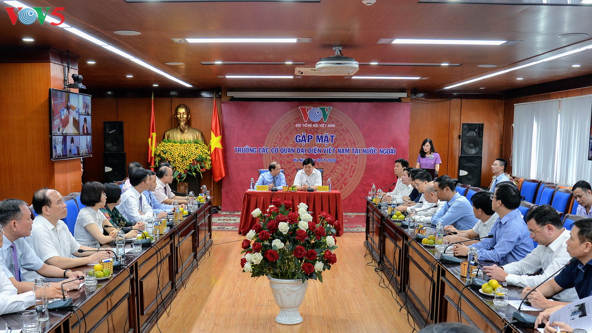 | Tham gia cuộc gặp còn có các Phó Tổng giám đốc Đài Tiếng nói Việt Nam và đại diện các cơ quan thường trú của Đài Tiếng nói Việt Nam ở nước ngoài dự gặp mặt qua hình thức trực tuyến. |