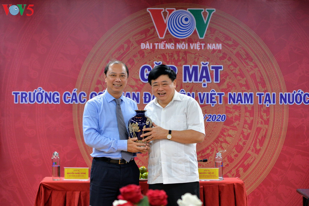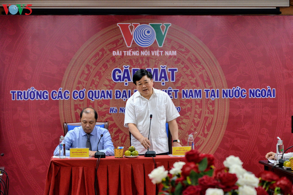 | Tại buổi gặp mặt, Tổng Giám đốc Đài Tiếng nói Việt Nam Nguyễn Thế Kỷ cho rằng Việt Nam và thế giới đang trải qua đợt dịch Covid-19, nên nhiệm vụ của các đại sứ, trưởng cơ quan đại diện Việt Nam ở nước ngoài sẽ có nhiều khó khăn, thử thách hơn. Ông Nguyễn Thế Kỷ tin tưởng các đại sứ, trưởng cơ quan đại diện ngoại giao Việt Nam ở nước ngoài sẽ hoàn thành tốt nhiệm vụ được giao. |