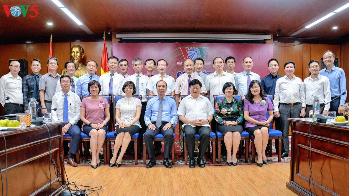 | Lãnh đạo Đài Tiếng nói Việt Nam và đoàn đại biểu cùng chụp ảnh lưu niệm tại buổi gặp. |